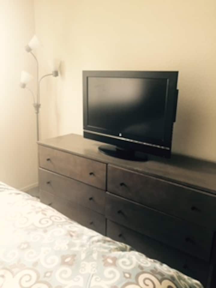 ಮನೆಯಲ್ಲಿ ನಿಮ್ಮ ಸ್ವಂತ ರೂಮ್, ಜೊತೆಗೆ ಹಂಚಿದ ಸ್ಥಳಗಳಿಗೆ ಪ್ರವೇಶ.