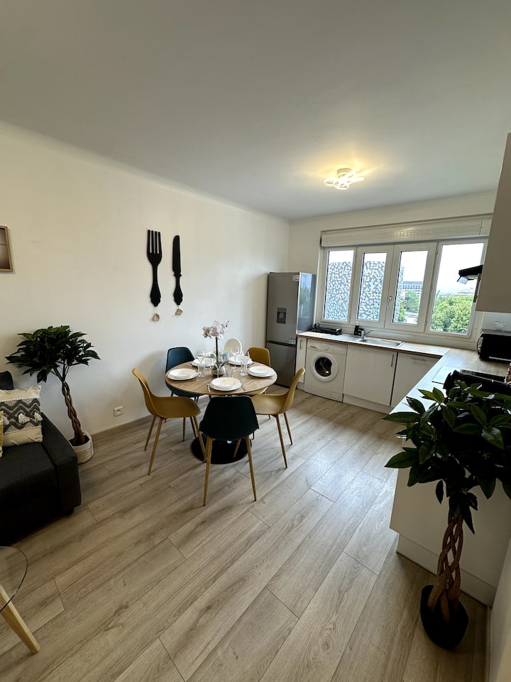 ಅಪಾರ್ಟ್ಮೆಂಟ್ ಬೆಚ್ಚಗಿರುತ್ತದೆ ಮತ್ತು ಪ್ರಕಾಶಮಾನವಾಗಿದೆ, ಮೂಲ ಅಂಗಡಿಗಳಿಗೆ ಹತ್ತಿರದಲ್ಲಿದೆ ಮತ್ತು ಮೆಟ್ರೋ, RER, ಟ್ರಾಮ್ಗಳು ಮತ್ತು ಬಸ್ಗಳಿಗೆ ಹತ್ತಿರದಲ್ಲಿದೆ.