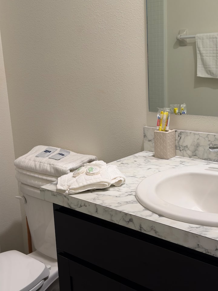 ಪ್ರವೇಶ ಮಾಹಿತಿ: ಗೆಸ್ಟ್ ಸೂಟ್ ನಮ್ಮ ಮನೆಯೊಳಗೆ ಇದೆ ಆದರೆ ಸಂಪೂರ್ಣವಾಗಿ ಖಾಸಗಿಯಾಗಿದೆ. ನೀವು ಮುಖ್ಯ ಮುಂಭಾಗದ ಬಾಗಿಲಿನ ಮೂಲಕ (ಸ್ಮಾರ್ಟ್ ಲಾಕ್ನೊಂದಿಗೆ) ಪ್ರವೇಶಿಸುತ್ತೀರಿ ಮತ್ತು ತಕ್ಷಣವೇ ನಿಮ್ಮ ಎಡಭಾಗದಲ್ಲಿರುವ ಪ್ರೈವೇಟ್ ಸೂಟ್ ಅನ್ನು ಕಾಣುತ್ತೀರಿ. ಸೂಟ್ ಸ್ಮಾರ್ಟ್ ಲಾಕ್ನೊಂದಿಗೆ ತನ್ನದೇ ಆದ ಪ್ರವೇಶ ಬಾಗಿಲನ್ನು ಹೊಂದಿದೆ. ನೀವು ನಮ್ಮ ಯಾವುದೇ ವೈಯಕ್ತಿಕ ವಾಸಿಸುವ ಪ್ರದೇಶಗಳ ಮೂಲಕ ನಡೆಯುವುದಿಲ್ಲ.