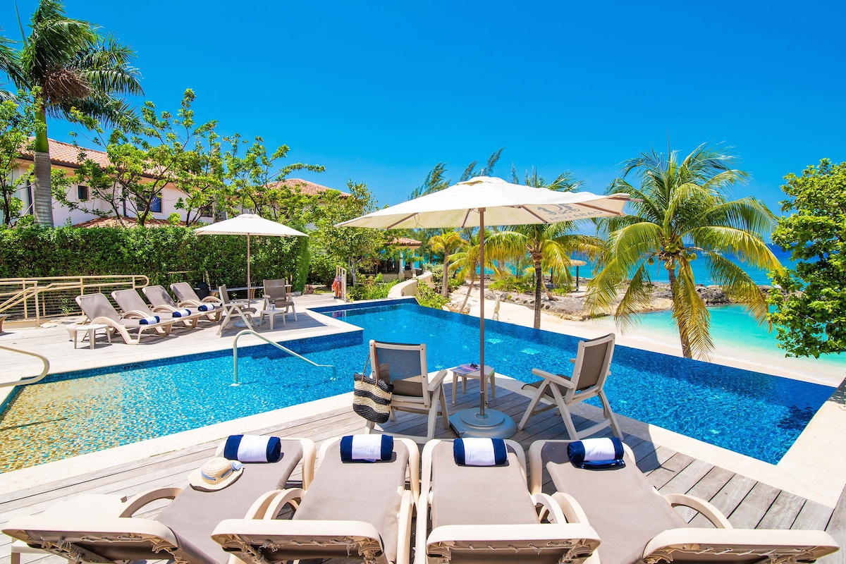 Experience oceanfront luxury in this exquisite residence, perfectly located on the iconic Seven Mile Beach. Designed for seamless indoor-outdoor living, this home features expansive patios, both sun-drenched and shaded, with private ocean-view terraces adjoining each bedroom. The opulent master suite boasts a king-size bed, while two elegantly appointed guest rooms, each with dual queen beds, ensure unmatched comfort and sophistication for all. Copyright © Luxury Retreats. All rights reserved.