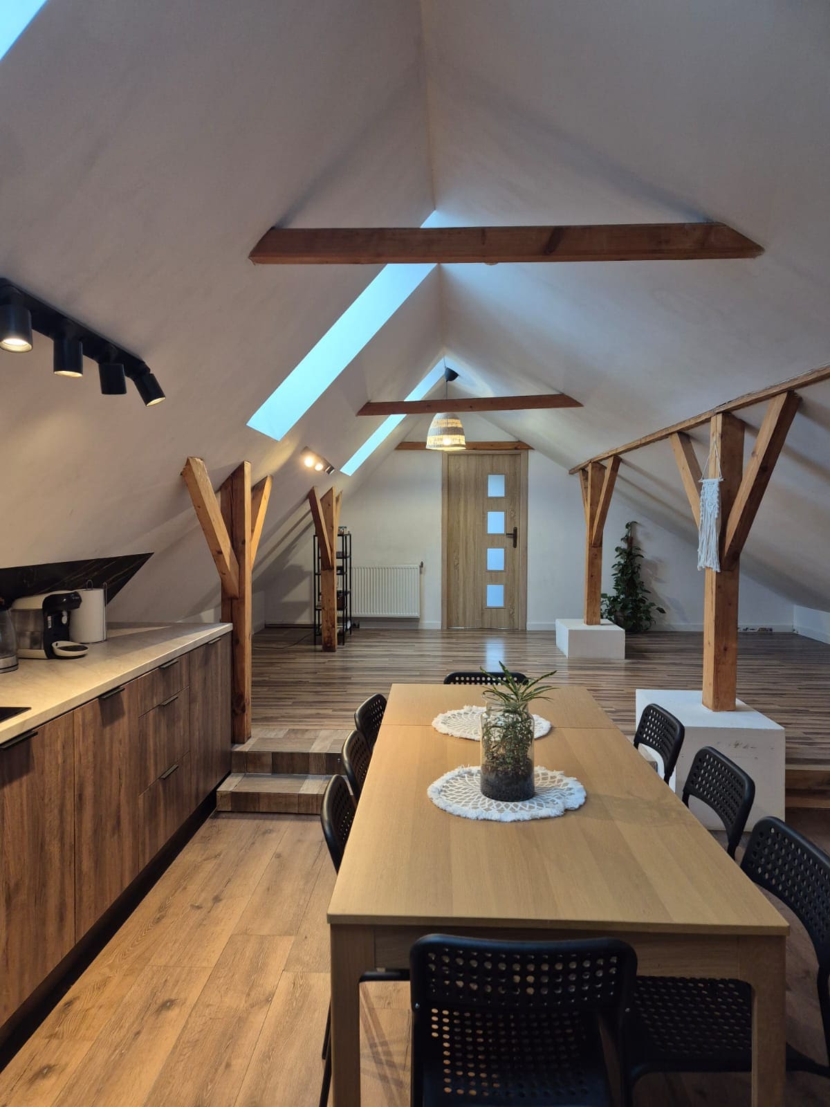 ನಮ್ಮ ಸ್ಥಿರತೆಯು ಜರ್ಮನ್ ನಂತರದ ಮನೆಯ ಭಾಗವಾಗಿದೆ, ಇದು 160 ಮೀ 2 ಎರಡು ಹೆಕ್ಟೇರ್ ಕಥಾವಸ್ತುವಿನಲ್ಲಿದೆ, 70 ಮೀಟರ್ ಟೆರೇಸ್ ಜೊತೆಗೆ ಅರ್ಧ-ಟೈಮ್ ಮನೆ, ಹಳೆಯ ಗ್ರಾಮದ ಉಪಕರಣಗಳನ್ನು ಸಂರಕ್ಷಿಸಲಾಗಿದೆ. ಹೋಸ್ಟ್ಗಳು ವಾಸಿಸುವ ಮನೆಯ ಭಾಗದಲ್ಲಿರುವ ಖಾಸಗಿ ಗ್ರಂಥಾಲಯವನ್ನು ಬಳಸುವ ಸಾಧ್ಯತೆ. ಹುಲ್ಲುಗಾವಲು ನೈಸರ್ಗಿಕ ವನ್ಯಜೀವಿ ಪರಿಸರವಾಗಿದೆ. ಪ್ರಕೃತಿಯನ್ನು ವೀಕ್ಷಿಸಲು ಒಳಾಂಗಣವನ್ನು (ಮಧ್ಯಾಹ್ನ ಮತ್ತು ಲೌಂಜ್ ಪ್ರದೇಶ) ಸಹ ಬಳಸಲಾಗುತ್ತದೆ. ಮನೆಯ ಪಕ್ಕದಲ್ಲಿ, ಶಾಂತಿಯನ್ನು ಬಯಸುವವರಿಗೆ ಹಳೆಯ ತೋಟದ (ಹ್ಯಾಮಾಕ್ಸ್) ಬಿಸಿಲು ಮತ್ತು ಮಬ್ಬಾದ ಸ್ಥಳಗಳು. ದೊಡ್ಡ ಅಡುಗೆಮನೆ. ಒಂದು ಬಾತ್ರೂಮ್, ಶವರ್.