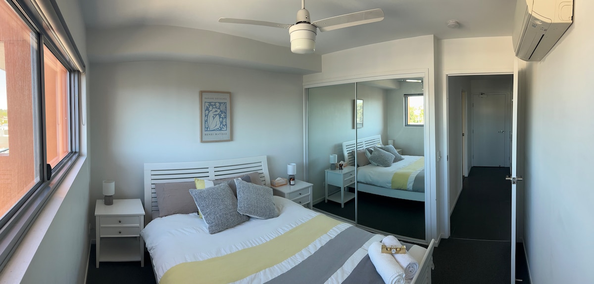 ತಾರಿಂಗಾದಲ್ಲಿ ಟಾಪ್ ಫ್ಲೋರ್ ಅಪಾರ್ಟ್ಮೆಂಟ್ (2 ಮೆಟ್ಟಿಲುಗಳ ವಿಮಾನಗಳು), ನಗರ ಮತ್ತು ಉಪನಗರ ವೀಕ್ಷಣೆಗಳೊಂದಿಗೆ ಉತ್ತರಕ್ಕೆ ಎದುರಾಗಿರುವ ಬಾಲ್ಕನಿ (ಫೋಟೋಶಾಪ್ ಮಾಡಲಾಗಿಲ್ಲ), ವಿಶಾಲವಾದ ಹವಾನಿಯಂತ್ರಿತ ಸಂಯೋಜಿತ ಲೌಂಜ್ ಮತ್ತು ಡೈನಿಂಗ್ ಪ್ರದೇಶ. ಮಾಸ್ಟರ್ ಬೆಡ್ರೂಮ್ನಲ್ಲಿ ಕ್ವೀನ್ ಸೈಜ್ ಬೆಡ್ ಮತ್ತು ನಂತರದ ಬಾತ್ರೂಮ್ ಇದೆ. (ಯಾವುದೇ ಏರ್ ಕಾನ್ ಇಲ್ಲ, ಆದರೆ ಫ್ಯಾನ್) ಬೆಡ್ರೂಮ್ 2 ಅನ್ನು ಈಗ ಸೋಫಾ/ಬೆಡ್ & ಡೆಸ್ಕ್ನೊಂದಿಗೆ ಸೇರಿಸಲಾಗಿದೆ (ಉತ್ತಮ ಕಾರ್ಯಸ್ಥಳ) ಶವರ್/ಸ್ನಾನದ ಕೋಣೆಯೊಂದಿಗೆ ಪ್ರತ್ಯೇಕ ಬಾತ್ರೂಮ್. ವಾಷರ್ ಮತ್ತು ಡ್ರೈಯರ್ ಹೊಂದಿರುವ ಆಂತರಿಕ ಲಾಂಡ್ರಿ. ಮುಂಭಾಗದ ಪ್ರವೇಶದ್ವಾರಕ್ಕೆ ಇಂಟರ್ಕಾಮ್ನೊಂದಿಗೆ ಸುರಕ್ಷಿತ ಕಟ್ಟಡ. 50 ಮೀಟರ್ ಒಳಗೆ ಬಸ್ ನಿಲುಗಡೆಗಳು, ಕೆಫೆ 100 ಮೀ, ಅಂಗಡಿಗಳು 700 ಮೀ.