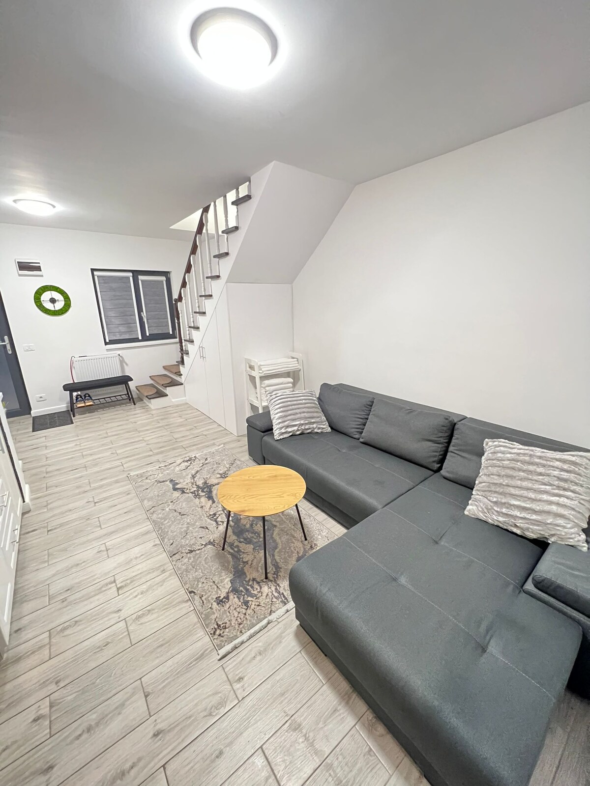 Clean, modern & private 84 square meters duplex equipped with all essentials of comforts of a home, a terrace and a big garden were you can enjoy a morning coffee or a peaceful dinner! You are 5 mins away from Suceava’s downtown and Cetatea de Scaun, also 17km from the airport! We are a friendly host and happy to help you with guidance and support 24/7.