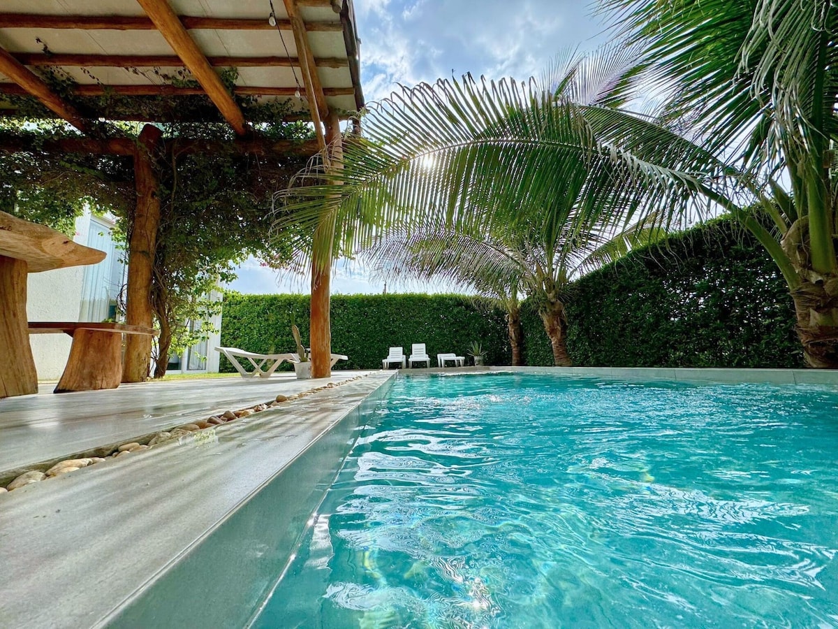 Disfruta del Paraíso Chic en Salinas del Rey, a solo 25 minutos de Barranquilla y a pasos del mar. Esta cabaña tipo chic, de 3 habitaciones, 3 baños y muy amplios espacios encantadores, cuenta con techos altos de paja, piscina rodeada de palmeras, zonas de hamacas y BBQ, ofrece un ambiente mágico para desconectar, relajarte y vivir momentos únicos. Con capacidad hasta para 10 huéspedes, perfecta para parejas, amigos o familia. ¡Tu escapada soñada en la costa caribeña te espera aqui!