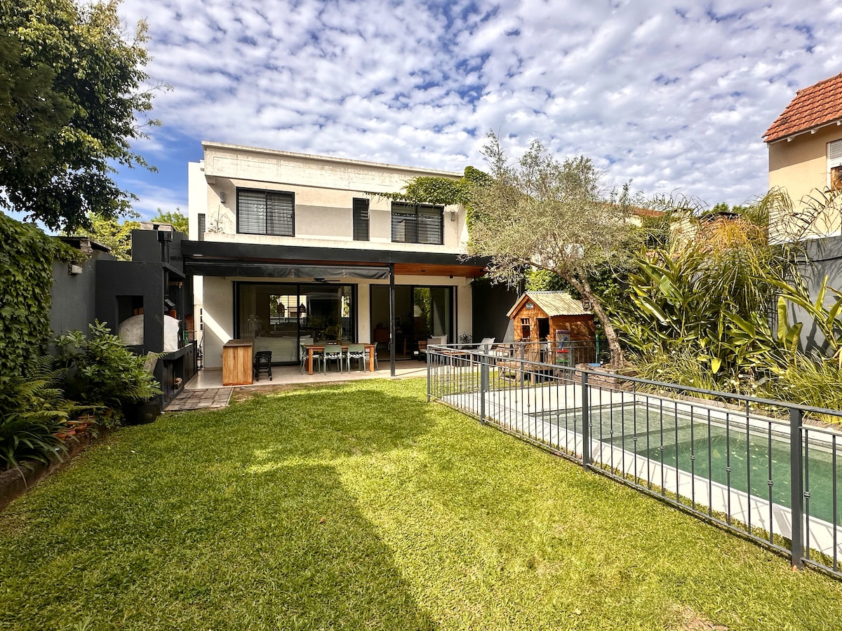 Disfruta del verano en un entorno verde y seguro! En San Isidro, excelente acceso y conexión con la ciudad. Casa moderna y súper luminosa. El hall da acceso a un living comedor con grandes ventanales al jardín. Toilette. Cocina integrada con isla, muy bien equipada. Lavadero separado. En planta alta 3 dormitorios y 2 baños completos. En el exterior una lindisima galería con mesa para 8/10 personas, living, parrilla, horno de barro y una linda pileta con playa húmeda ideal para los niños.