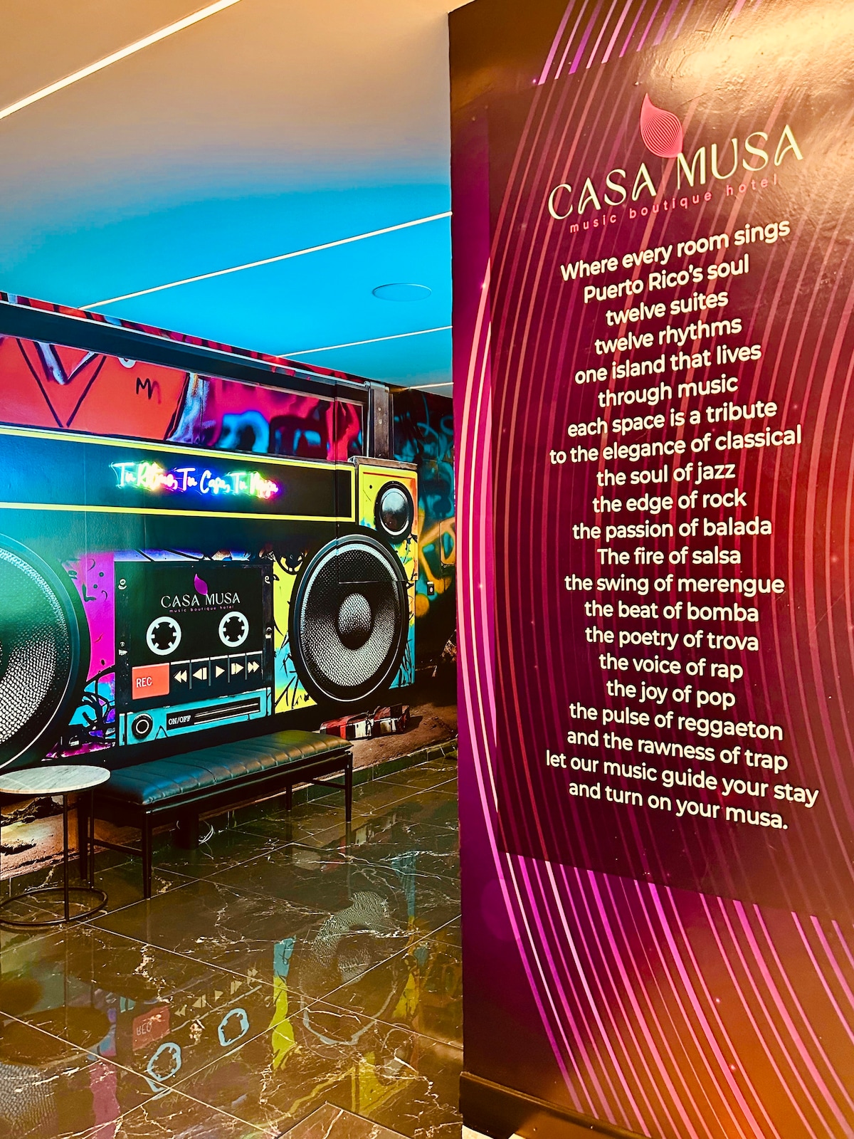 ಕಾಸಾ ಮುಸಾ ಬೊಟಿಕ್ ಹೋಟೆಲ್ ಕೇವಲ ವಾಸ್ತವ್ಯಕ್ಕಿಂತ ಹೆಚ್ಚಿನದಾಗಿದೆ; ಇದು ಸಾಂಸ್ಕೃತಿಕ ಅನುಭವವಾಗಿದೆ. ನಮ್ಮ ಶ್ರೀಮಂತ ಸಂಗೀತ ಪರಂಪರೆಯನ್ನು ಆಚರಿಸಲು ಮೀಸಲಾಗಿರುವ ಪೋರ್ಟೊ ರಿಕೊದ ಮೊದಲ ಮತ್ತು ಏಕೈಕ ಬೊಟಿಕ್ ಹೋಟೆಲ್ ಕಾಸಾ ಮೂಸಾಗೆ ಸುಸ್ವಾಗತ. ಪ್ರತಿ ಮಾಸ್ಟರ್ ಸೂಟ್ ನಮ್ಮ ಕಥೆಯನ್ನು ಹೇಳುವ ಮತ್ತು ನಮ್ಮ ಆತ್ಮವನ್ನು ಬಹಿರಂಗಪಡಿಸುವ ವಿನ್ಯಾಸ ಮತ್ತು ಲಯದ ಮೂಲಕ ಒಂದು ಪ್ರಸಿದ್ಧ ಪ್ರಕ್ಷವನ್ನು ಗೌರವಿಸುತ್ತದೆ. ನೀವು ನಿಮ್ಮ ಸೂಟ್ಗೆ ಪ್ರವೇಶಿಸಿದಾಗ ನೀವು ಸ್ಟಾರ್ನಂತೆ ಭಾಸವಾಗುತ್ತೀರಿ, ಇದು ಹೊಂದಾಣಿಕೆಯ ಪ್ಲಶ್ ಕ್ವೀನ್-ಸೈಜ್ ಬೆಡ್, ಅಡುಗೆಮನೆ, ಸ್ಟೈಲಿಶ್ ಲಿವಿಂಗ್ ರೂಮ್ ಮತ್ತು ಖಾಸಗಿ ಬಾತ್ರೂಮ್ ಅನ್ನು ಒಳಗೊಂಡಿದೆ. ಆರಾಮ ಮತ್ತು ಶೈಲಿಯ ಪರಿಪೂರ್ಣ ಮಿಶ್ರಣ.