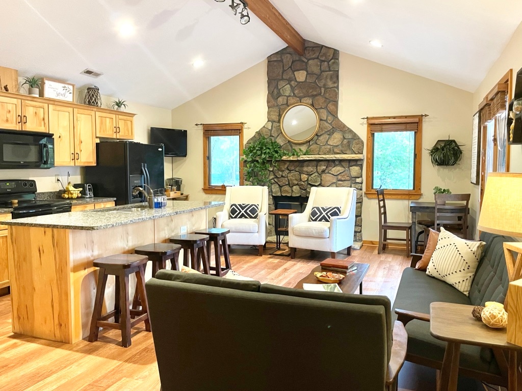 ಈ ಆರಾಮದಾಯಕ ಬಾಡಿಗೆಗಳು ಸಾಕುಪ್ರಾಣಿ ಸ್ನೇಹಿಯಾಗಿವೆ, ಒಂದು ಮಲಗುವ ಕೋಣೆಯಲ್ಲಿ ರಾಣಿ ಗಾತ್ರದ ಹಾಸಿಗೆ, ಜೊತೆಗೆ 5 ಗೆಸ್ಟ್ಗಳಿಗೆ ಅವಕಾಶ ಕಲ್ಪಿಸಲು ಎರಡನೇ ಮಲಗುವ ಕೋಣೆಯಲ್ಲಿ ಅವಳಿ-ಓವರ್-ಫುಲ್ ಬಂಕ್ ಹಾಸಿಗೆ ಸೇರಿವೆ. ಅವರು ಸಜ್ಜುಗೊಳಿಸುತ್ತಾರೆ ಮತ್ತು ಉಪಕರಣಗಳು, ಕಾಫಿ ಮೇಕರ್, ಟೋಸ್ಟರ್ ಮತ್ತು ಪಾತ್ರೆಗಳನ್ನು ಹೊಂದಿರುವ ಪೂರ್ಣ ಅಡುಗೆಮನೆಯನ್ನು ಒದಗಿಸುತ್ತಾರೆ. ಸೌಲಭ್ಯಗಳಲ್ಲಿ ಪ್ರೈವೇಟ್ ಬಾತ್ರೂಮ್, ಹೀಟ್ ಮತ್ತು ಹವಾನಿಯಂತ್ರಣ, ಕೇಬಲ್ ಟಿವಿ, ಯುಎಸ್ಬಿ ಚಾರ್ಜಿಂಗ್ ಪೋರ್ಟ್ಗಳು ಮತ್ತು ವೈಫೈ ಸೇರಿವೆ. ನಿಮ್ಮ ಹೊರಾಂಗಣ ಆನಂದಕ್ಕಾಗಿ ಕ್ಯಾಬಿನ್ ಪಿಕ್ನಿಕ್ ಟೇಬಲ್ ಮತ್ತು ಗ್ರಿಲ್ ಅನ್ನು ಒದಗಿಸುತ್ತದೆ. ಚೆಕ್-ಇನ್ ಸಮಯದಲ್ಲಿ ಬೆಡ್ ಮತ್ತು ಸ್ನಾನದ ಲಿನೆನ್ಗಳನ್ನು ಒದಗಿಸಲಾಗುತ್ತದೆ.