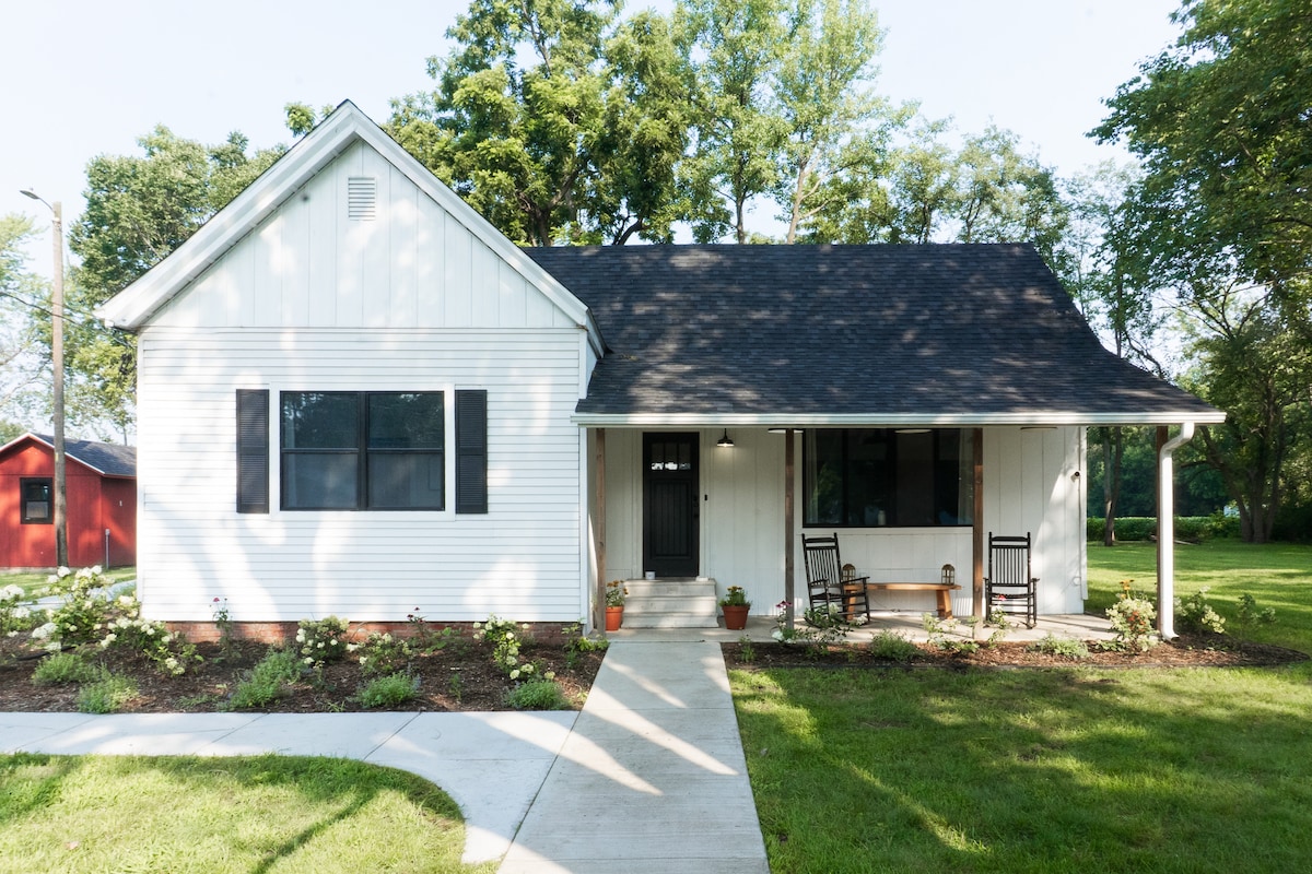 ಸಣ್ಣ ಪಟ್ಟಣದ ಸೆಟ್ಟಿಂಗ್ನಲ್ಲಿ ಕ್ರಾಫ್ಟ್ಸ್ಮನ್ ಸ್ಟೈಲ್ನಲ್ಲಿ ಸಣ್ಣ 2 ಬೆಡ್ರೂಮ್ಗಳ ಕುಟುಂಬ ಮನೆಯನ್ನು ಪುನರ್ನಿರ್ಮಿಸಲಾಗಿದೆ. ನೈಸರ್ಗಿಕ ಬೆಳಕಿನ ಉತ್ತಮ ಮೂಲವನ್ನು ಒದಗಿಸುವ ಸಾಕಷ್ಟು ಕಿಟಕಿಗಳು. ಚಾಂಡೇಲಿಯರ್ ಲಿವಿಂಗ್ ರೂಮ್ ಅನ್ನು ಅಲಂಕರಿಸುತ್ತದೆ ಮತ್ತು ಅದ್ಭುತ ಹೂವಿನ ಗೊಂಚಲು ಒಂದು ಮಲಗುವ ಕೋಣೆಯನ್ನು ಅಲಂಕರಿಸುತ್ತದೆ. ಅಡುಗೆಮನೆಯಲ್ಲಿ ರೌಂಡ್ ಟೇಬಲ್ ಇದ್ದು, ಕೌಂಟರ್ ಟಾಪ್ನಲ್ಲಿ 2 ಕ್ಕೆ ಹೆಚ್ಚುವರಿ ಆಸನದೊಂದಿಗೆ 4 ಕ್ಕೆ ಆಸನವನ್ನು ಒದಗಿಸುತ್ತದೆ. ಗ್ಯಾಸ್ ಸ್ಟೌವ್ ಮತ್ತು ದೊಡ್ಡ ರಿಫ್ರಿಜ್. ನೆಲಮಾಳಿಗೆಯಲ್ಲಿ ಪೂರ್ಣ ಲಾಂಡ್ರಿ ಒದಗಿಸಲಾಗಿದೆ. ದುಂಡಗಿನ ಮೇಜು ಮತ್ತು ಛತ್ರಿ ಹೊಂದಿರುವ ಹಿಂಭಾಗದ ಒಳಾಂಗಣದೊಂದಿಗೆ ದೊಡ್ಡ ಮುಚ್ಚಿದ ಮುಂಭಾಗದ ಮುಖಮಂಟಪ. ಹಿಂಭಾಗದಲ್ಲಿ ಗ್ರಿಲ್ ಮತ್ತು ಫೈರ್ಪಿಟ್