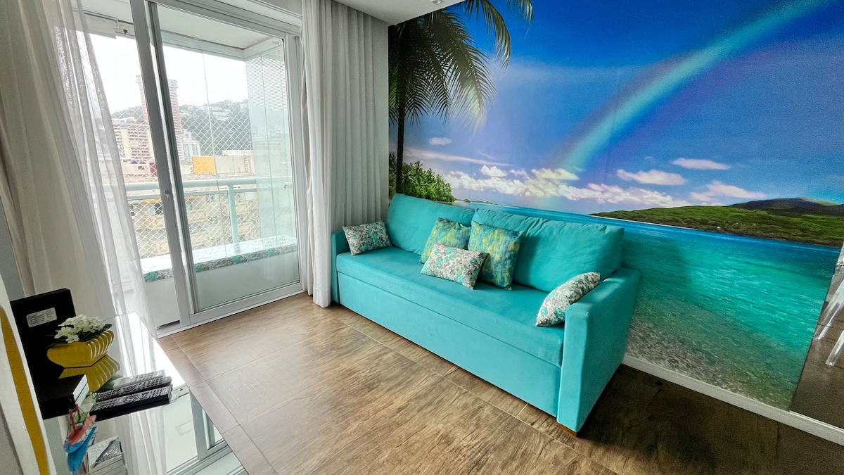 Sua família vai estar perto de tudo ao ficar neste lugar bem-localizado. Em frente à praia, no canto do forte. Ao lado de um estacion. particular, próx. a supermercado, farmácia, restaurantes. Em frente tem uma academia na areia, vôlei de praia, quiosque, Stand up, caiaque, banana boat O lugar mais valorizado de Praia Grande alugamos na temporada, ele possui 1 quarto de casal com cama de massagem 1 Colchão de casal e dois de solteiros, um sofá grande na sala 2 banheiros Cortinas blackout