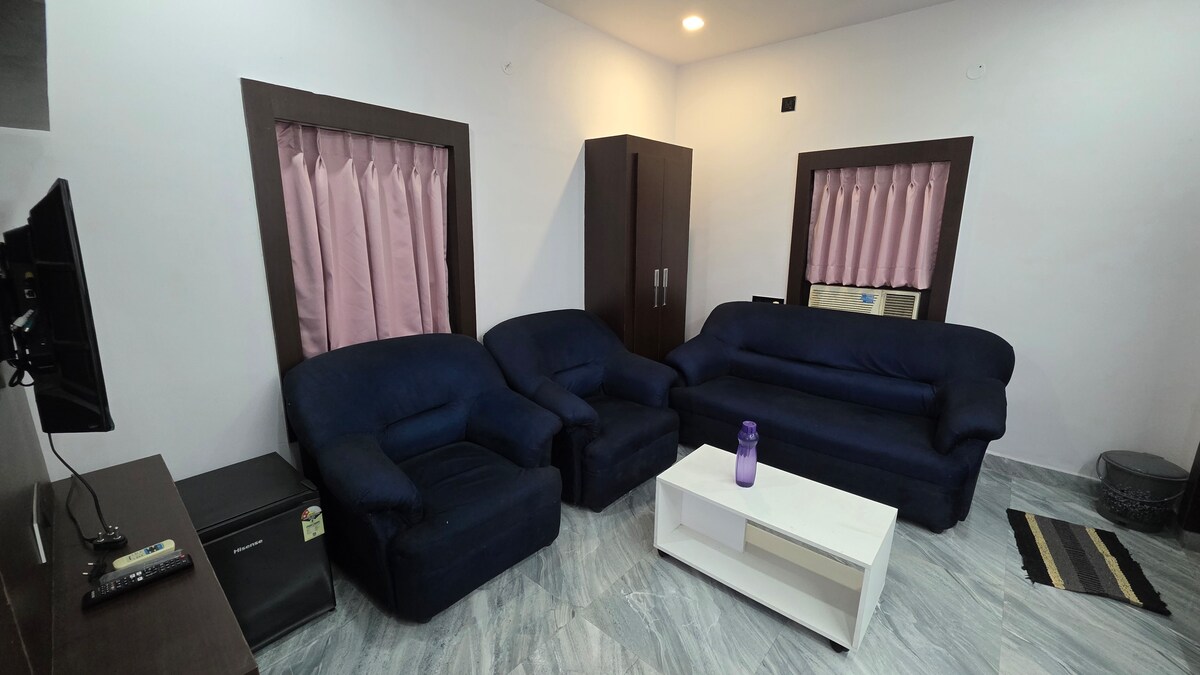 ಯಾವುದೇ ವಿಚಾರಣೆಗಳಿಗಾಗಿ @92466I5827@ ಇಡೀ ಗುಂಪು ಕೇಂದ್ರೀಕೃತ ಸ್ಥಳದಲ್ಲಿರುವ ಎಲ್ಲಾ ಸ್ಥಳಗಳಿಗೆ ಸುಲಭ ಪ್ರವೇಶವನ್ನು ಆನಂದಿಸುತ್ತದೆ. ರೆಸ್ಟೋರೆಂಟ್ಗಳು, ದೊಡ್ಡ ಶಾಪಿಂಗ್ ಮಾಲ್ಗಳು, ಸೆನಿಮಾ ಥಿಯೇಟರ್ಗಳು, ಬಸ್ ಕಾಂಪ್ಲೆಕ್ಸ್ ಇತ್ಯಾದಿ. ಇದು ಮುಖ್ಯ ರಸ್ತೆ ಕಟ್ಟಡದಲ್ಲಿರುವ ನಗರದ ಹೃದಯಭಾಗದಲ್ಲಿದೆ. ನಾವು 5 ಅಡಿ ಉದ್ದದ 1 ಹಾಸಿಗೆಗಳನ್ನು ಹೊಂದಿದ್ದೇವೆ. X 6. 5 ಅಡಿ. 1 ಕ್ವೀನ್ 5 ಅಡಿ x 6.5, 1 ಕ್ವೀನ್ 5 x 6. 5 ಅಡಿ. 4 x 6 ಅಡಿ ಹೆಚ್ಚುವರಿ ಬೆಡ್ ಮಾಸ್ಟರ್ ಬೆಡ್ ರೂಮ್ನಲ್ಲಿ 8 ಜನರು ಸುಲಭವಾಗಿ ವಾಸ್ತವ್ಯ ಹೂಡಬಹುದು. ಅಂಬಿಕಾ ಹೋಟೆಲ್ ನಮ್ಮ ಅಪಾರ್ಟ್ಮೆಂಟ್ನ ಪಕ್ಕದಲ್ಲಿದೆ, ಇದು ಬೆಳಿಗ್ಗೆ 11 ರಿಂದ ರಾತ್ರಿ 10 ರವರೆಗೆ ಆಹಾರವನ್ನು ಒದಗಿಸುತ್ತದೆ.