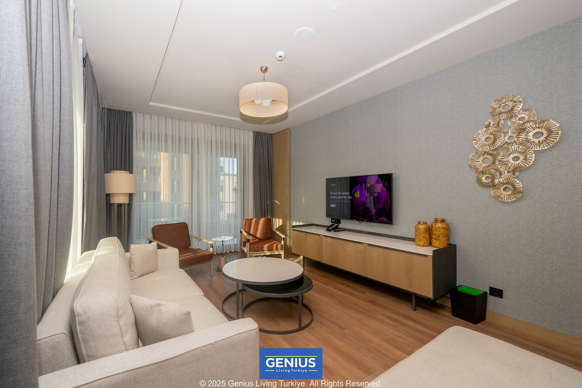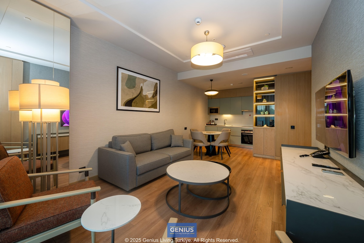Welcome to our magnificent 1 bedroom apartment that offers a warm and comfortable accommodation experience in spacious units with forest views, right in the heart of Istanbul’s financial and commercial center. This apartment is furnished and equipped with state-of-the-art technology and contemporary design, and is only a few minutes away from Vadistanbul and Vadistanbul Mall, the city’s most prestigious area.