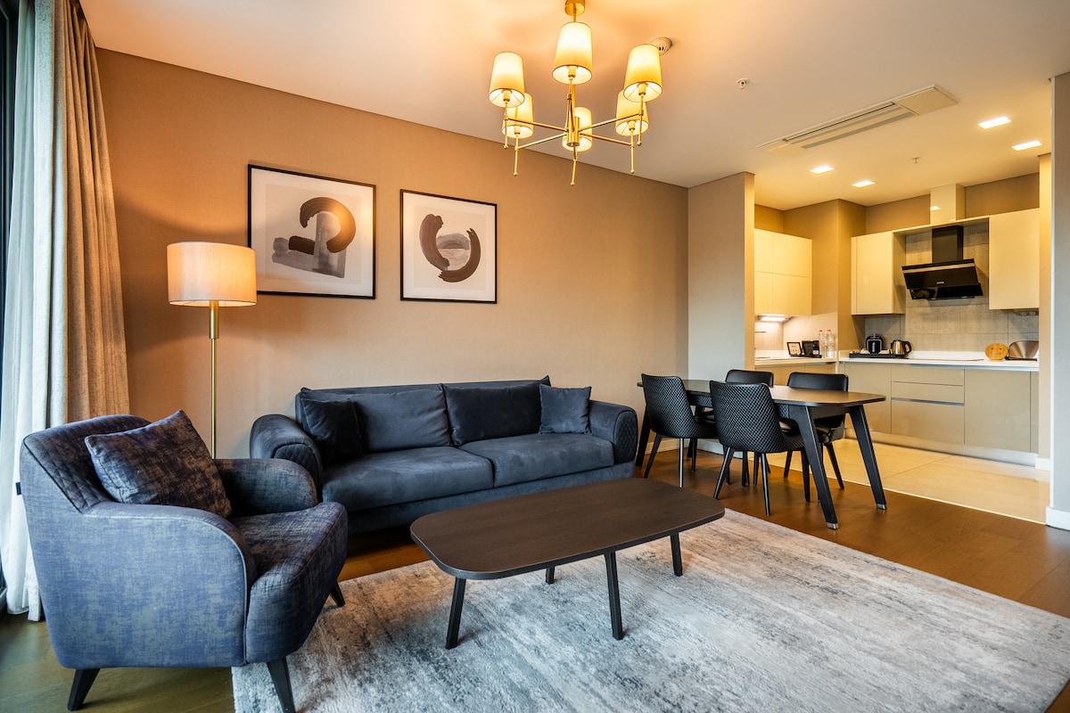 Welcome to this luxury 1 bedroom apartment in Sarıyer area, located on one of Istanbul’s biggest shopping center. This stylish apartment offers spacious living with a fully equipped kitchen, access to wellness facilities including an indoor pool, spa, sauna, and fitness center, and comes with daily free housekeeping service. We wish you a pleasant stay from now !