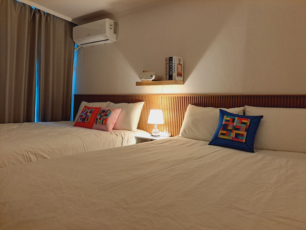 ❤리뷰이벤트❤ 리뷰적고 체크아웃 "1시간" 연장이벤트 <<체크인 전 문의만 적용가능>> -3층에 위치해있습니다! 계단 수는 많지 않으나 약간 경사가 있습니다 참고 후 예약부탁드려요 ⚠️계단으로 인한 환불은 절대불가입니다 -체크인: 오후4시, 체크아웃: 오전11시 입니다. Check-in time: 4pm, Check-out time: 11am - 방은 총 3개 4인실/4인실/2인실이 있으며 추가 2명은 토퍼제공(예약 전 문의주세요) 최대 12명 까지 가능합니다 - 화장실은 1개 입니다 -최신삼성 TV QLED 55인치 (넷플무료) - 사상역 1번출구에서 단 7분 거리! - 주차장없음 유로주차안내가능 - 인덕션1구,전기밥솥,정수기,전자레인지