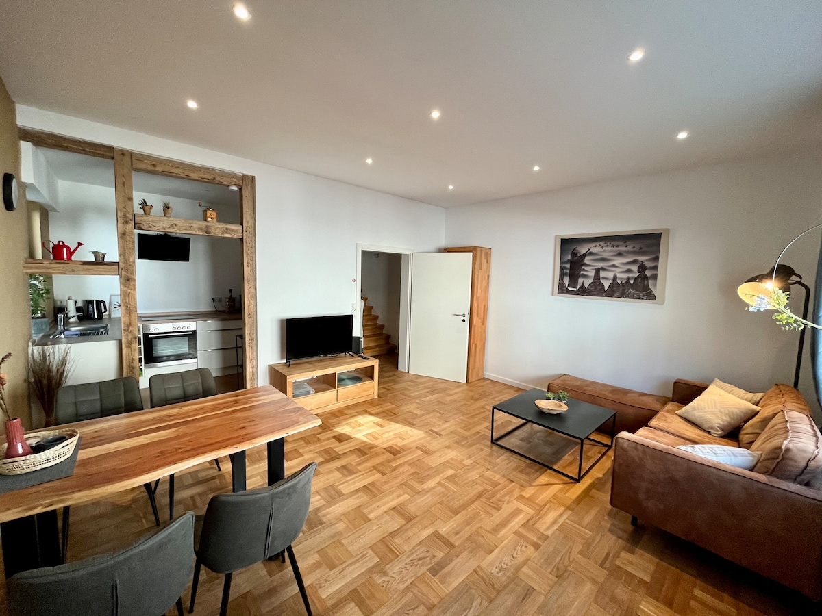 ನಮ್ಮ ಸ್ಥಳಕ್ಕೆ ಆತ್ಮೀಯ ಸ್ವಾಗತ. ಈ ಕೇಂದ್ರೀಕೃತ ಪ್ರಾಪರ್ಟಿಯಲ್ಲಿ ಸೊಗಸಾದ ಅನುಭವವನ್ನು ಆನಂದಿಸಿ. ನಾವು ನಿಮಗೆ ಸುಮಾರು 60 ಚದರ ಮೀಟರ್ಗಳೊಂದಿಗೆ ಸುಂದರವಾದ 3-ಕೋಣೆಗಳ ಅಪಾರ್ಟ್ಮೆಂಟ್ ಅನ್ನು ನೀಡುತ್ತೇವೆ, ಇದನ್ನು ಹೊಸದಾಗಿ ನವೀಕರಿಸಲಾಗಿದೆ ಮತ್ತು ವುಪ್ಪೆರ್ಟಲ್-ಎಲ್ಬರ್ಫೆಲ್ಡ್ನಲ್ಲಿ ಕೇಂದ್ರೀಕೃತವಾಗಿದೆ. ಇದು ತುಂಬಾ ಸೊಗಸಾದ ಮತ್ತು ಸಂಪೂರ್ಣವಾಗಿ ಹೊಸದಾಗಿ ಸಜ್ಜುಗೊಂಡಿದೆ. ಅಡುಗೆಮನೆಯು ಪೂರ್ಣಗೊಂಡಿದೆ ಮತ್ತು ಸಂಪೂರ್ಣ ಸ್ವಯಂಚಾಲಿತ ಕಾಫಿ ಯಂತ್ರವನ್ನು ಹೊಂದಿದೆ. ಇಲ್ಲಿಂದ ನೀವು ಸಿಟಿ ಸೆಂಟರ್ ಮತ್ತು ಮುಖ್ಯ ರೈಲು ನಿಲ್ದಾಣವನ್ನು ಬಹಳ ಬೇಗನೆ ತಲುಪಬಹುದು. ಬೊಟಾನಿಕಲ್ ಗಾರ್ಡನ್ ಮತ್ತು ಎಲಿಸೆಂಟರ್ಮ್ ಅನ್ನು 5 ನಿಮಿಷಗಳಲ್ಲಿ ಕಾಲ್ನಡಿಗೆ ತಲುಪಬಹುದು.