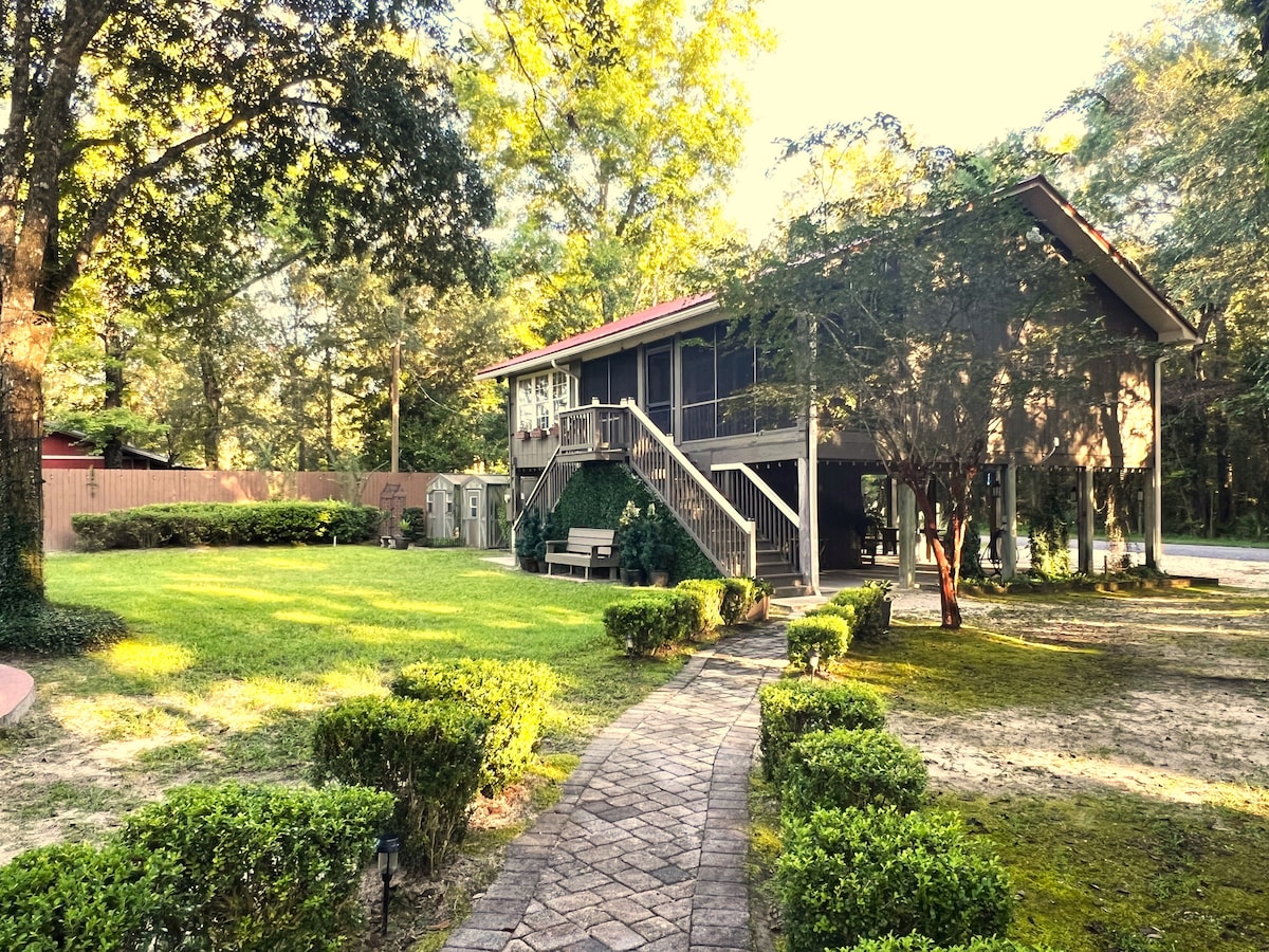 ಪ್ರಾಪಂಚಿಕತೆಯಿಂದ ತಪ್ಪಿಸಿಕೊಳ್ಳಿ ಮತ್ತು ನಿಮ್ಮ ಪ್ರೀತಿಪಾತ್ರರನ್ನು ಬೇಯೌನಲ್ಲಿರುವ ಪ್ರಣಯ ಐಷಾರಾಮಿಯ ಓಯಸಿಸ್ಗೆ ಕರೆದೊಯ್ಯಿರಿ. ಪ್ರತಿ ಕಿಟಕಿಯಿಂದ ಸಾಟಿಯಿಲ್ಲದ ಪ್ರಶಾಂತತೆ, ಸೌಂದರ್ಯ ಮತ್ತು ನೆಮ್ಮದಿಯನ್ನು ಮೆಚ್ಚಿಸಿ! ಖಾಸಗಿ ಸ್ವರ್ಗದ ಅನುಭವಕ್ಕಾಗಿ ಸಾಕಷ್ಟು ನೈಸರ್ಗಿಕ ಬೆಳಕಿನೊಂದಿಗೆ ಉನ್ನತ-ಮಟ್ಟದ ಪೀಠೋಪಕರಣಗಳನ್ನು ಆನಂದಿಸಿ. ಹಲವಾರು ಹೊರಾಂಗಣ ಆಟಗಳೊಂದಿಗೆ - ಎಲ್ಲದರಿಂದ ದೂರವಿರಿ; ಜೆಂಗಾ, ರಿಂಗ್ ಟಾಸ್ ಮತ್ತು ಇನ್ನಷ್ಟು! ಪ್ರಕೃತಿಯ ಸೌಂದರ್ಯವನ್ನು ಅನ್ವೇಷಿಸುವ ಕ್ಯಾನೋದಲ್ಲಿ ದಿನವನ್ನು ಒಟ್ಟಿಗೆ ಕಳೆಯಿರಿ. ಕಸ್ಟಮ್ ಫೈರ್ ಪಿಟ್, ಆಹ್ಲಾದಕರ ಕುರ್ಚಿಗಳು ಮತ್ತು ಟಿಕಿ ಟಾರ್ಚ್ಗಳ ಸುತ್ತ ವಿಶೇಷ ನೆನಪುಗಳನ್ನು ನಿರ್ಮಿಸಿ. #ರೊಮಾನ್ಸ್