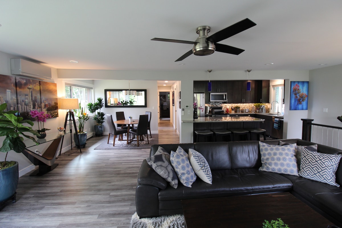 ನಮ್ಮ ಇನ್-ಸಿಟಿ, ವಾಲಿಂಗ್ಫೋರ್ಡ್ ನೆರೆಹೊರೆಯಲ್ಲಿ ವಾಸಿಸುವ ಅನುಭವ ಸಿಯಾಟಲ್ ಓಯಸಿಸ್, ಸುಂದರವಾಗಿ ನವೀಕರಿಸಲಾಗಿದೆ (ಮೇ 2018 ರಲ್ಲಿ ಪೂರ್ಣಗೊಂಡಿದೆ), ಮಧ್ಯ ಶತಮಾನದ ಆಧುನಿಕ, 1300 SF, ನಮ್ಮ ಡ್ಯುಪ್ಲೆಕ್ಸ್ನ ಸಂಪೂರ್ಣವಾಗಿ ಖಾಸಗಿ, ಮೇಲಿನ ಮಹಡಿ ಘಟಕ. ಪೆಂಟ್ಹೌಸ್ ಸೂಟ್ ಅಮೆಜಾನ್ ಮತ್ತು ಡೌನ್ಟೌನ್ನಿಂದ ಕೇವಲ 3.5 ಮೈಲುಗಳು ಮತ್ತು ವಾಷಿಂಗ್ಟನ್ ವಿಶ್ವವಿದ್ಯಾಲಯದಿಂದ (ಮುಖ್ಯ ಕ್ಯಾಂಪಸ್) 1.2 ಮೈಲುಗಳ ದೂರದಲ್ಲಿದೆ. ಹವಾನಿಯಂತ್ರಣ, ಕೀಪ್ಯಾಡ್ ಸೂಟ್ ಪ್ರವೇಶ, ಡಬಲ್ ಪೇನ್ ಕಿಟಕಿಗಳು ಮತ್ತು ಪಾರ್ಕಿಂಗ್ನೊಂದಿಗೆ Airbnb ಗೆಸ್ಟ್ಗಳನ್ನು ಗಮನದಲ್ಲಿಟ್ಟುಕೊಂಡು ನಾವು ಈ ಸಂಪೂರ್ಣ ಮೇಲಿನ ಮಹಡಿಯ ಪೆಂಟ್ಹೌಸ್ ಸೂಟ್ ಅನ್ನು ನಿರ್ದಿಷ್ಟವಾಗಿ ವಿನ್ಯಾಸಗೊಳಿಸಿದ್ದೇವೆ.