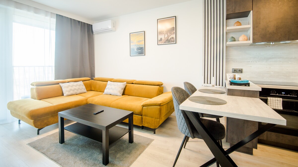 ಆಹ್ಲಾದಕರ ನೋಟವನ್ನು ಹೊಂದಿರುವ ಬಾಲ್ಕನಿಯನ್ನು ಹೊಂದಿರುವ ನಮ್ಮ ಹೊಸ, ಸಂಪೂರ್ಣವಾಗಿ ಸಜ್ಜುಗೊಳಿಸಲಾದ 2 ಮಲಗುವ ಕೋಣೆ ಅಪಾರ್ಟ್ಮೆಂಟ್ನಲ್ಲಿ ನಿಮ್ಮ ವಾಸ್ತವ್ಯವನ್ನು ಆನಂದಿಸಿ. ಪಾರ್ಕಿಂಗ್ ಸ್ಥಳವನ್ನು ಬಾಡಿಗೆಗೆ ಸೇರಿಸಲಾಗಿದೆ. ಅಪಾರ್ಟ್ಮೆಂಟ್ ವಿಮಾನ ನಿಲ್ದಾಣದಿಂದ ಕೇವಲ 10 ನಿಮಿಷಗಳ ನಡಿಗೆ ಮತ್ತು ಬಸ್ ನಿಲ್ದಾಣದಿಂದ 5 ನಿಮಿಷಗಳ ದೂರದಲ್ಲಿದೆ. ದಿನಸಿ ಎಂದರೆ 2 ನಿಮಿಷಗಳ ನಡಿಗೆ. ಅಪಾರ್ಟ್ಮೆಂಟ್ನಲ್ಲಿ ಸೋಫಾ ಬೆಡ್ನೊಂದಿಗೆ ಲಿವಿಂಗ್ ರೂಮ್ ಮತ್ತು ಡಬಲ್ ಬೆಡ್ನೊಂದಿಗೆ ಮಲಗುವ ಕೋಣೆ ಇದೆ, ಇದು ಗರಿಷ್ಠ 3 ಜನರಿಗೆ ಸೂಕ್ತವಾಗಿದೆ. ನಗರ ವೀಕ್ಷಣೆಗಳನ್ನು ಹೊಂದಿರುವ ಬಾಲ್ಕನಿ ಬೆಳಗಿನ ಕಾಫಿ ಅಥವಾ ಸಂಜೆ ಗ್ಲಾಸ್ ವೈನ್ಗೆ ಸೂಕ್ತ ಸ್ಥಳವಾಗಿದೆ. ಹೆದ್ದಾರಿಯಲ್ಲಿ ಹತ್ತಿರದಲ್ಲಿ ಏವಿಯನ್ ಶಾಪಿಂಗ್ ಸೆಂಟರ್ ಇದೆ.