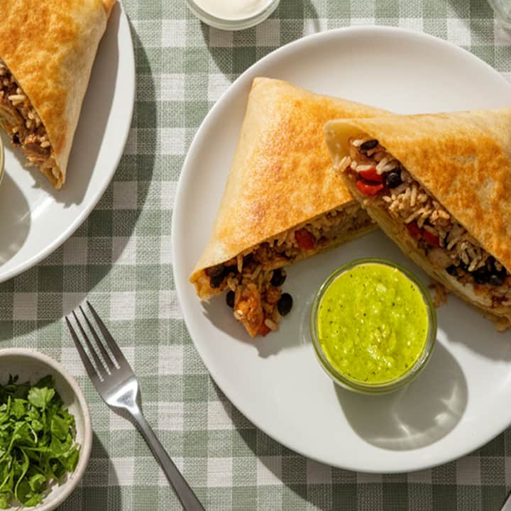4 ಊಟಗಳು. ಮಿಷನ್-ಶೈಲಿಯ ಚಿಕನ್ ಬುರ್ರಿಟೊ (ಅಕ್ಕಿ, ಕಪ್ಪು ಬೀನ್ಸ್ ಮತ್ತು ಮೂರು-ಚೀಸ್ ಮಿಶ್ರಣದೊಂದಿಗೆ ಚಿಪಾಟ್ಲೆ-ಬ್ರೈಸ್ಡ್ ಚಿಕನ್) ಮತ್ತು ಮಿಷನ್-ಶೈಲಿಯ ಬೀಫ್ ಬುರ್ರಿಟೊ (ಸಾಕಷ್ಟು ಬೀನ್ಸ್, ಅಕ್ಕಿ ಮತ್ತು ಚೀಸ್ನೊಂದಿಗೆ ನಿಧಾನವಾಗಿ ಬ್ರೈಸ್ಡ್ ಬೀಫ್ ಆವೃತ್ತಿ) ಎರಡನ್ನೂ ಕ್ರೆಮಾ ಮತ್ತು ಸಾಲ್ಸಾ ವರ್ಡೆ ಜೊತೆಗೆ ಬಡಿಸಲಾಗುತ್ತದೆ. ಪ್ರತಿ ಊಟದ 2 ಅನ್ನು ಒಳಗೊಂಡಿದೆ.
