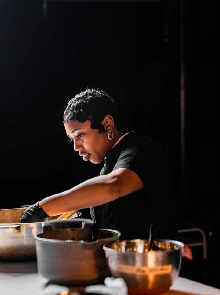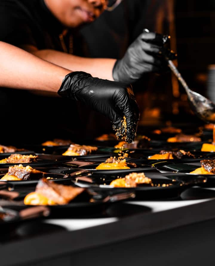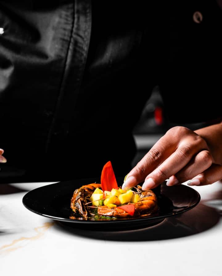 ಸೃಜನಶೀಲ, ಉದ್ದೇಶಪೂರ್ವಕ ಪಾಕಶಾಲೆಯ ಅನುಭವಗಳ ಮೇಲೆ ಕೇಂದ್ರೀಕರಿಸುವ ವೃತ್ತಿಪರ ಬಾಣಸಿಗ.
