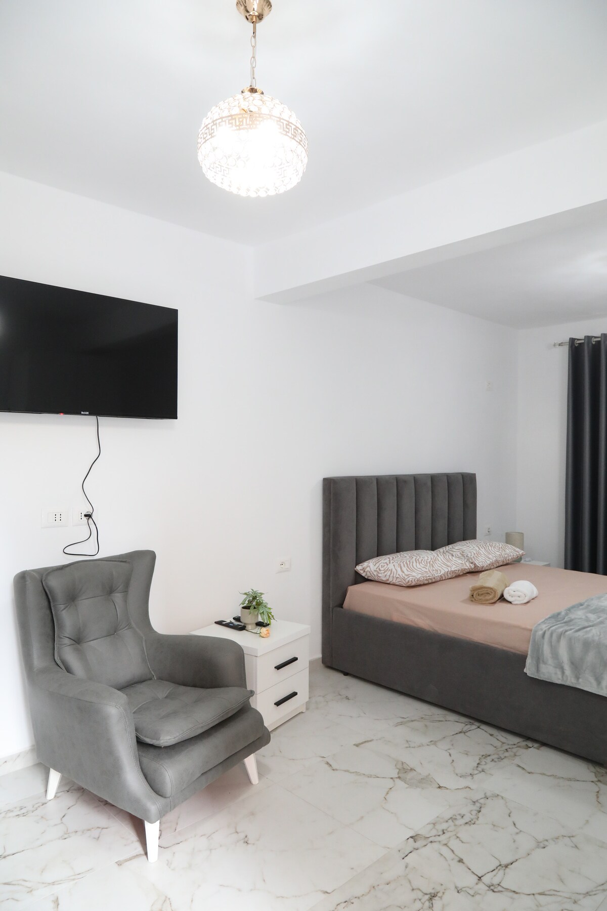 ನಮ್ಮ ಸ್ನೇಹಶೀಲ ಡಬಲ್ ರೂಮ್ ಅನ್ನು ಆರಾಮ ಮತ್ತು ವಿಶ್ರಾಂತಿಗಾಗಿ ವಿನ್ಯಾಸಗೊಳಿಸಲಾಗಿದೆ, ಇದು ದಂಪತಿಗಳು, ಏಕಾಂಗಿ ಪ್ರಯಾಣಿಕರು ಅಥವಾ ವ್ಯವಹಾರದ ಗೆಸ್ಟ್ಗಳಿಗೆ ಸೂಕ್ತವಾಗಿದೆ. ಸಂಪೂರ್ಣವಾಗಿ ಸಜ್ಜುಗೊಳಿಸಲಾದ ಮತ್ತು ಹೊಸದಾಗಿ ನವೀಕರಿಸಿದ ರೂಮ್ ಆರಾಮದಾಯಕವಾದ ಡಬಲ್ ಬೆಡ್, ಹವಾನಿಯಂತ್ರಣ ಮತ್ತು ಉಚಿತ ಹೈ-ಸ್ಪೀಡ್ ವೈಫೈ ಅನ್ನು ಒಳಗೊಂಡಿದೆ. ಷ್ಕೋಡರ್ನ ಹಳೆಯ ಪಟ್ಟಣದ ಹೃದಯಭಾಗದಲ್ಲಿದೆ, ಪಾದಚಾರಿ ಬೀದಿಯಿಂದ ಕೇವಲ 100 ಮೀಟರ್ ದೂರದಲ್ಲಿ, ಕ್ಯಾಥೆಡ್ರಲ್ನಿಂದ 250 ಮೀಟರ್ ದೂರದಲ್ಲಿ ಮತ್ತು ಶ್ಕೋಡರ್ ವಿಶ್ವವಿದ್ಯಾಲಯದಿಂದ ಒಂದು ಸಣ್ಣ ನಡಿಗೆ ಇದೆ, ನೀವು ಕೆಫೆಗಳು, ರೆಸ್ಟೋರೆಂಟ್ಗಳು ಮತ್ತು ಸಾಂಸ್ಕೃತಿಕ ಹೆಗ್ಗುರುತುಗಳಿಂದ ಆವೃತರಾಗುತ್ತೀರಿ.