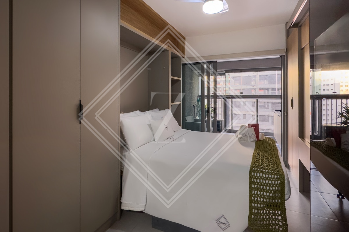 Studio novíssimo, decorado com muito carinho, no cond IS Moema, bairro nobre, localizado próx. a estação de metrô Eucaliptos e Shop.Ibirapuera. Completamente mobiliado, com Ar Condicionado, armários , cama Queen, Wi-Fi 240mega, smart TV 50", geladeira frostfree, cooktop indução, microondas, cafeteira, cortinas blackout, ducha higiênica e todo enxoval para uma estadia tranquila e aconchegante. E você poderá usufruir do espaço compartilhado do coworking, academia, piscina, ofurô e lavanderia.