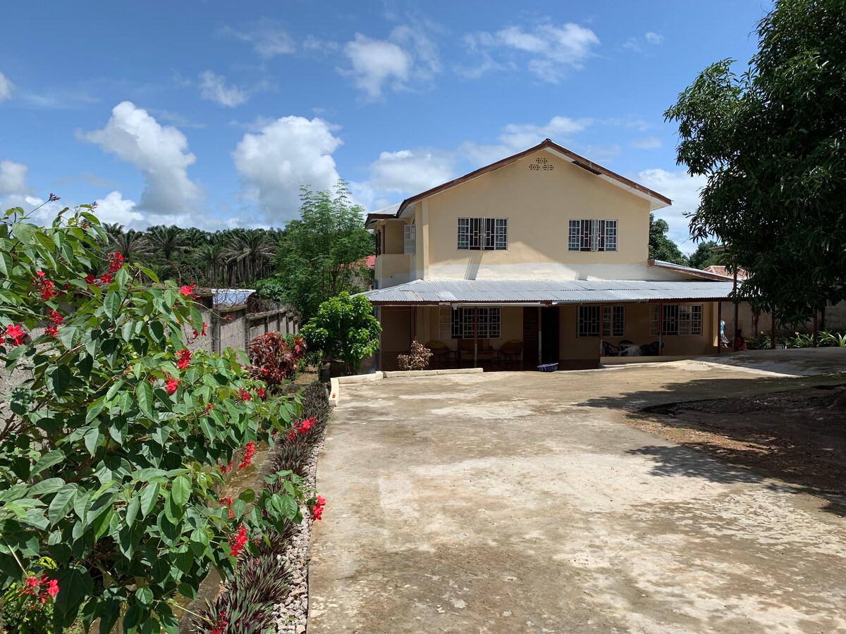 ನೀವು ಕೆಲಸಕ್ಕಾಗಿ ಫ್ರೀಟೌನ್ಗೆ ಪ್ರಯಾಣಿಸುತ್ತಿದ್ದರೆ, ರಜಾದಿನದ ಸಣ್ಣ ವಿರಾಮಗಳು ಅಥವಾ ನೀವು ಸಿಯೆರಾ ಲಿಯೋನ್ಗೆ ಆಗಾಗ್ಗೆ ವ್ಯವಹಾರ ಪ್ರಯಾಣಿಕರಾಗಿದ್ದರೆ ಸ್ಪರ್ ರಸ್ತೆಯಲ್ಲಿರುವ ನಮ್ಮ ಸರ್ವಿಸ್ಡ್ ಮನೆಗಳು ಸೂಕ್ತವಾಗಿವೆ. ನಿಮ್ಮ ವಾಸ್ತವ್ಯವು ಪರಿಪೂರ್ಣವಾಗಿದೆ ಎಂದು ಖಚಿತಪಡಿಸಿಕೊಳ್ಳಲು ನಾವು ಯಾವಾಗಲೂ ನಮ್ಮ ತಂಡದೊಂದಿಗೆ ಅದ್ಭುತ ಸೇವೆಗಳನ್ನು ನೀಡುತ್ತೇವೆ. 7 ಜನರವರೆಗೆ ಆರಾಮವಾಗಿ ಮಲಗುವ ಅವರು ಮೂರು ಹವಾನಿಯಂತ್ರಿತ ಬೆಡ್ರೂಮ್ಗಳು ಮತ್ತು ಎರಡು ಬಾತ್ರೂಮ್ಗಳನ್ನು ಒಳಗೊಂಡಿರುತ್ತಾರೆ. ಎಲ್ಲಾ ಬೆಡ್ಲೈನ್ ಮತ್ತು ಟವೆಲ್ಗಳನ್ನು ದೈನಂದಿನ ಹೌಸ್ಕೀಪಿಂಗ್ ತಂಡವು ಒದಗಿಸುತ್ತದೆ. ವಿಶ್ರಾಂತಿ ಪಡೆಯಲು ವಿಶಾಲವಾದ ಲೌಂಜ್ ಮತ್ತು ಎಲ್ಲಕ್ಕಿಂತ ಹೆಚ್ಚಾಗಿ ಸಂಪೂರ್ಣ ಸುಸಜ್ಜಿತ ಅಡುಗೆಮನೆ