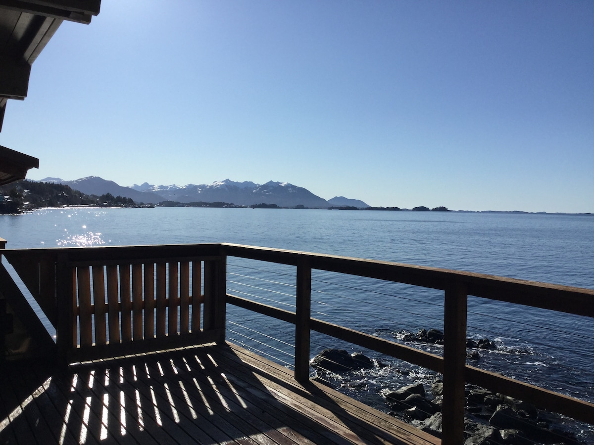 ಪೆಸಿಫಿಕ್ ಮಹಾಸಾಗರದ ತೀರದಲ್ಲಿ ನೇರವಾಗಿ ಕುಳಿತುಕೊಳ್ಳುವ ಹದ್ದುಗಳ ಮೇಲೆ ನೆಲೆಗೊಂಡಿರುವ ಮರಗಳಲ್ಲಿ ನೆಲೆಗೊಂಡಿರುವ ಈ ಪ್ರಕಾಶಮಾನವಾದ ಮತ್ತು ಗಾಳಿಯಾಡುವ ಮಿಡ್ ಸೆಂಚುರಿ ಮಾಡರ್ನ್ ಎ-ಫ್ರೇಮ್ನ ಹಳ್ಳಿಗಾಡಿನ ಮೋಡಿಯನ್ನು ಆನಂದಿಸಿ. ಸಿಟ್ಕಾ ಸೌಂಡ್ ಮತ್ತು ಮೌಂಟ್ ಎಡ್ಜ್ಕಂಬೆ ಜ್ವಾಲಾಮುಖಿಯ ಉಸಿರುಕಟ್ಟಿಸುವ ಸೌಂದರ್ಯ ಮತ್ತು ವಿಹಂಗಮ ನೋಟಗಳನ್ನು ಕಿಟಕಿಗಳು ಮತ್ತು ಮೂರು ಪ್ರತ್ಯೇಕ ಡೆಕ್ಗಳಿಂದ ತಡೆರಹಿತವಾಗಿವೆ. ನಿಮ್ಮ ಬೆಳಗಿನ ಕಾಫಿಯನ್ನು ಆನಂದಿಸುವಾಗ ಅಥವಾ ಸಂಜೆ ನೀವು ವಿಶ್ರಾಂತಿ ಪಡೆಯುತ್ತಿರುವಾಗ ಮತ್ತು ಅಲೆಗಳನ್ನು ಕೇಳುತ್ತಿರುವಾಗ ತಿಮಿಂಗಿಲಗಳು, ನೀರುನಾಯಿಗಳು, ಸಮುದ್ರ ಸಿಂಹಗಳು ಮತ್ತು ಹದ್ದುಗಳನ್ನು ನೋಡಿ.