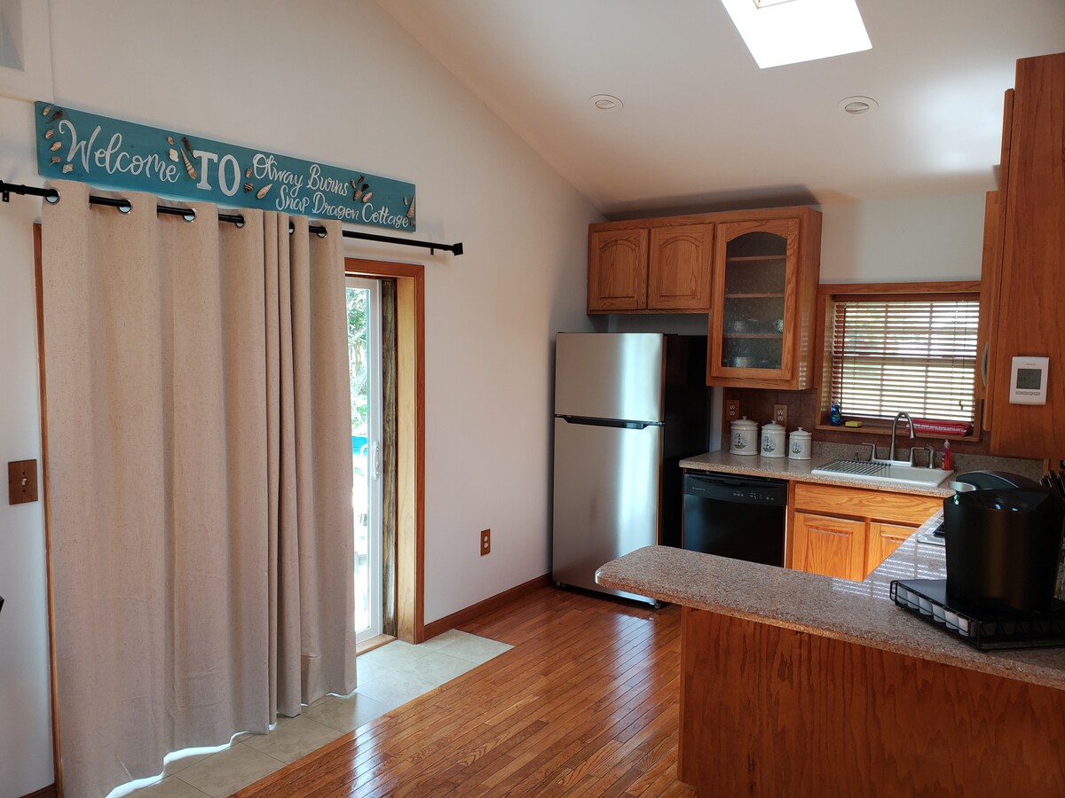 ಅದು ಸಮುದ್ರಕ್ಕೆ ಉರುಳುವ ಮಾರ್ಗವನ್ನು ಅನುಸರಿಸುವುದನ್ನು ಕಲ್ಪಿಸಿಕೊಳ್ಳಿ ಮತ್ತು ನೀವು ವರ್ಲ್ಡ್ಸ್ ಎಂಡ್ನಲ್ಲಿ ನಿಮ್ಮನ್ನು ಕಂಡುಕೊಳ್ಳುತ್ತೀರಿ. ಈ ಏಕಾಂತ ಕಾಟೇಜ್ ಸಂಪೂರ್ಣ ಸೌಲಭ್ಯಗಳನ್ನು ನೀಡುತ್ತದೆ ಮತ್ತು ನಿಮ್ಮ ಮುಂದಿನ ರಜೆಗೆ ಸಂಪೂರ್ಣವಾಗಿ ಸಿದ್ಧವಾಗಿದೆ. ಮರಳು ಕಡಲತೀರಗಳನ್ನು ಅನ್ವೇಷಿಸುವುದನ್ನು ಆನಂದಿಸಿ, ಸ್ಥಳೀಯ ವನ್ಯಜೀವಿಗಳನ್ನು ಹುಡುಕಿ ಅಥವಾ ದೋಣಿಗೆ ನಡೆದು ಒಕ್ರಾಕೋಕ್ ದ್ವೀಪಕ್ಕೆ ಒಂದು ದಿನದ ಟ್ರಿಪ್ ಕೈಗೊಳ್ಳಿ. ಸಾರ್ವಜನಿಕ ದೋಣಿ ನಿಮಿಷಗಳ ದೂರದಲ್ಲಿ ಪ್ರಾರಂಭವಾಗುತ್ತದೆ. ಅಸಾಧಾರಣ ಮೀನುಗಾರಿಕೆ ಮತ್ತು ಬಾತುಕೋಳಿ ಬೇಟೆಯ ಮೈದಾನಗಳಿಗೆ ಉತ್ತಮ ಪ್ರವೇಶ! ಸೂರ್ಯ ಮುಳುಗುವುದನ್ನು ನೋಡುತ್ತಿರುವ ಸ್ಕ್ರೀನ್ ಮಾಡಿದ ಡೆಕ್ನಲ್ಲಿ ನಿಮ್ಮ ದಿನವನ್ನು ಕೊನೆಗೊಳಿಸಿ.