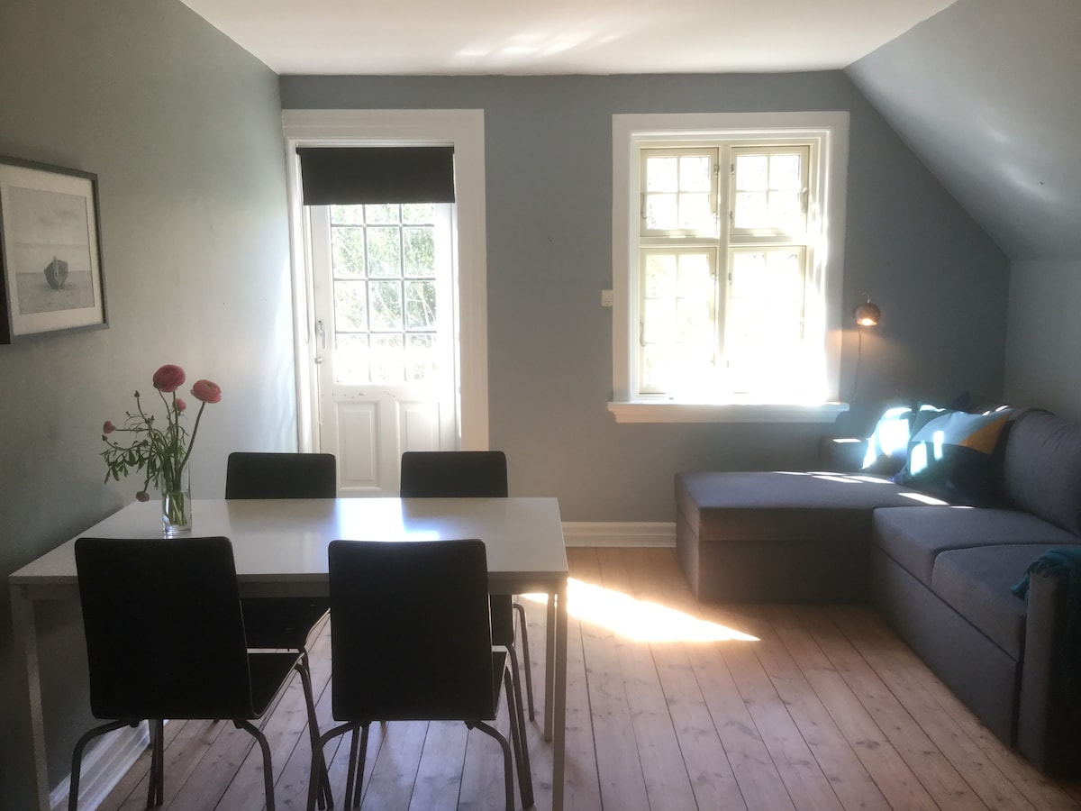 ಸುಂದರವಾದ, ಹಳೆಯ ವಿಲ್ಲಾದಲ್ಲಿ 1 ನೇ ಮಹಡಿಯಲ್ಲಿ ಆರಾಮದಾಯಕ ರಜಾದಿನದ ಅಪಾರ್ಟ್ಮೆಂಟ್. ಅಪಾರ್ಟ್ಮೆಂಟ್ ಎರಡು ರೂಮ್ಗಳು, ಸಣ್ಣ ಬಾಲ್ಕನಿಗೆ ಪ್ರವೇಶ ಹೊಂದಿರುವ ಲಿವಿಂಗ್ ರೂಮ್, ಜೊತೆಗೆ ತನ್ನದೇ ಆದ ಅಡುಗೆಮನೆ ಮತ್ತು ಬಾತ್ರೂಮ್ ಅನ್ನು ಒಳಗೊಂಡಿದೆ. 4 ಜನರಿಗೆ ಸ್ಥಳಾವಕಾಶವಿದೆ - ಜೊತೆಗೆ ಲಿವಿಂಗ್ ರೂಮ್ನಲ್ಲಿ ಉತ್ತಮ ಸೋಫಾ ಹಾಸಿಗೆಯ ಮೇಲೆ ಯಾವುದೇ ಹೆಚ್ಚುವರಿ ಹಾಸಿಗೆ ಇದೆ. ಅಡುಗೆಮನೆಯು ಸ್ಟೌವ್/ಓವನ್, ಫ್ರಿಜ್, ಕಾಫಿ ಮೇಕರ್, ಅಡುಗೆ ಮಡಕೆ ಮತ್ತು ಸಹಜವಾಗಿ ವಿವಿಧ ಗೇರ್ ಮತ್ತು ಭಕ್ಷ್ಯಗಳನ್ನು ಒಳಗೊಂಡಿದೆ. ವಾಷರ್/ಡ್ರೈಯರ್ಗೆ ಪ್ರವೇಶವನ್ನು ಮನೆಯ ನೆಲಮಾಳಿಗೆಯಲ್ಲಿ ಜೋಡಿಸಬಹುದು. ಮನೆಯ ಹಜಾರದ ಮೂಲಕ ಪ್ರವೇಶದ್ವಾರ, ಆದರೆ ಹೆಚ್ಚುವರಿಯಾಗಿ ಇದು ಪ್ರತ್ಯೇಕ ಅಪಾರ್ಟ್ಮೆಂಟ್ ಆಗಿದೆ.