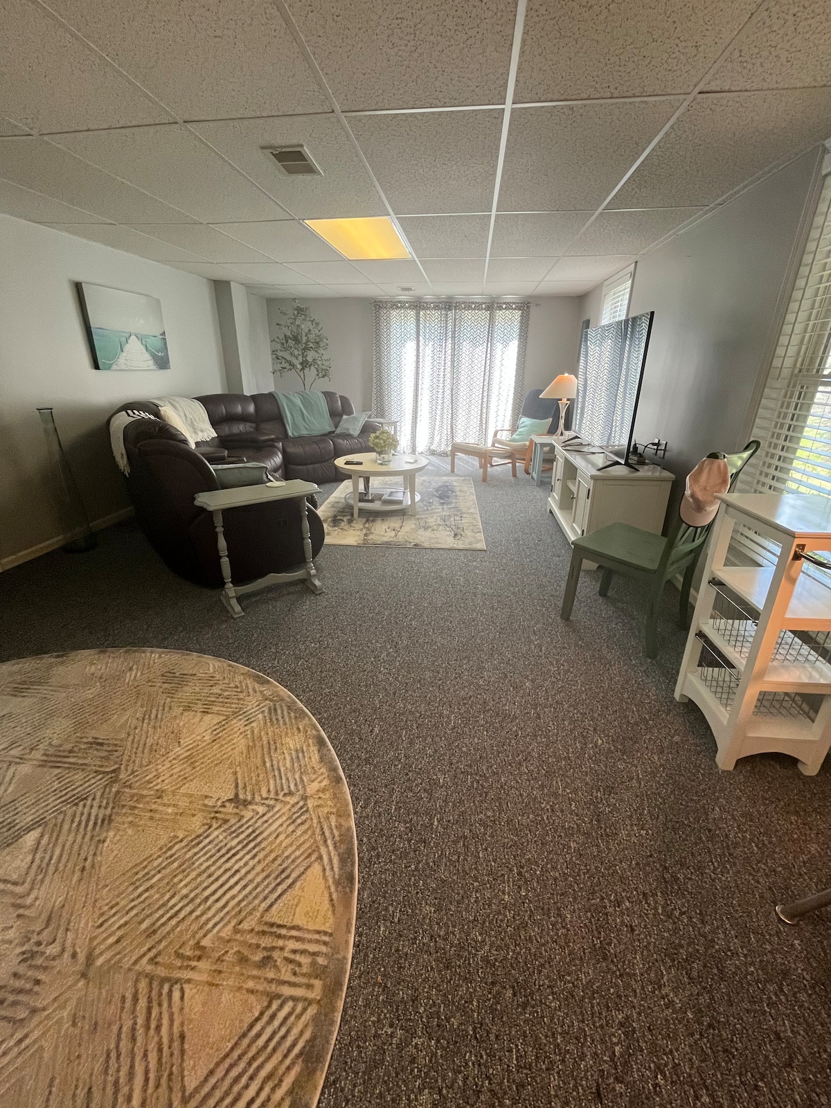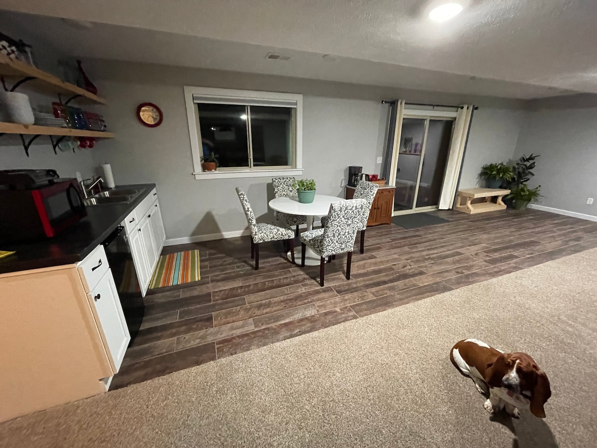 ನೀವು ವಿಶ್ರಾಂತಿ ಪಡೆಯಲು ಮತ್ತು ಒಂದೇ ಆರಾಮದಾಯಕ ಸ್ಥಳದಲ್ಲಿ ರೀಚಾರ್ಜ್ ಮಾಡಲು ಅಗತ್ಯವಿರುವ ಎಲ್ಲವೂ. ಖಾಸಗಿ ಪ್ರವೇಶದ್ವಾರ. ಈ ಸೂಟ್ ಎಂಬುದು ಮೂಲಭೂತ ಅಡುಗೆಮನೆ ಪಾತ್ರೆಗಳು ಮತ್ತು ಪಾತ್ರೆಗಳನ್ನು ಹೊಂದಿರುವ ಫ್ರಿಜ್, ಮೈಕ್ರೊವೇವ್ ಮತ್ತು ಸ್ಟೌವನ್ನು ಒಳಗೊಂಡಿರುವ ಸಣ್ಣ ಅಡುಗೆಮನೆಯೊಂದಿಗೆ ತೆರೆದ ನೆಲದ ಯೋಜನೆಯಾಗಿದೆ. ಇದು ಸ್ಟೋರ್ಗಳು, ರೆಸ್ಟೋರೆಂಟ್ಗಳಿಗೆ ಹತ್ತಿರವಿರುವ ಪಟ್ಟಣದಲ್ಲಿದೆ. ಗ್ರಿಲ್ ಔಟ್ ಮಾಡಲು ಮುಚ್ಚಿದ ಪ್ರದೇಶದೊಂದಿಗೆ ಉತ್ತಮ ಒಳಾಂಗಣ. ನಾರ್ತ್ ಕಂಟ್ರಿ ಟ್ರಯಲ್ಗೆ ಮತ್ತು ಹೊಸ ಡ್ರ್ಯಾಗನ್ ಟ್ರೇಲ್ನಿಂದ 10 ನಿಮಿಷಗಳ ನಡಿಗೆ ದೂರ. ಒಂದು ಕ್ವೀನ್ ಬೆಡ್ ಮತ್ತು ಸೋಫಾ ಇದೆ. ಇದು ಇಬ್ಬರು ಗೆಸ್ಟ್ಗಳನ್ನು ಆರಾಮವಾಗಿ ಮಲಗಿಸುತ್ತದೆ.