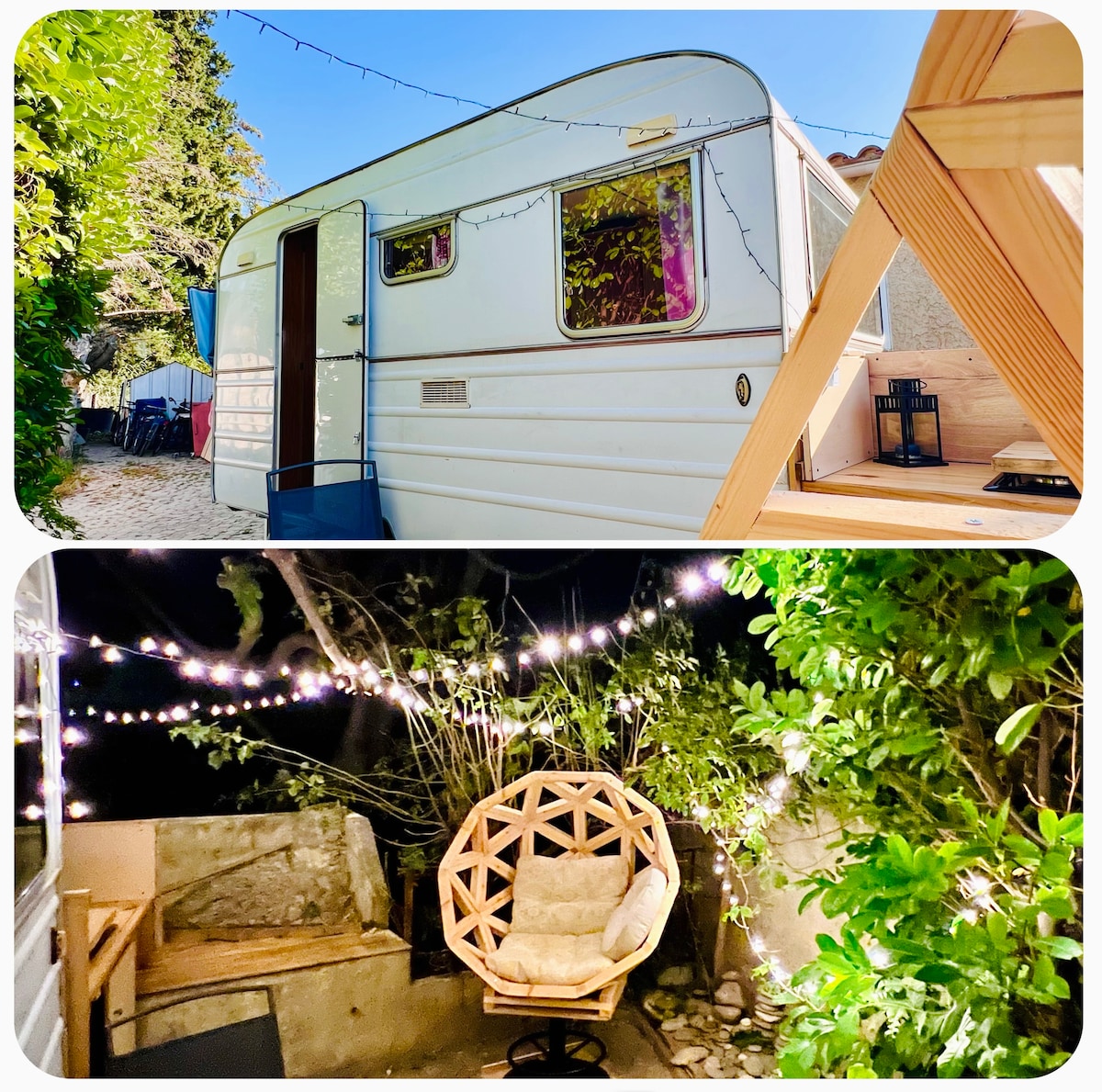 1 chalet vitré et 1 caravane, jacuzzi, salle de bain privative. Venez avec vos enfants, entre ami(e)s, ou à deux. Profitez de la vue sur les vignes et son coucher de soleil en toute intimité. Une bouilloire avec thé, cafetière senseo, frigo, micro onde et mini four. Différentes planches ainsi que vin, bulles, petits déjeuners sont en extras bubullesdanslesvignesbyso Chauffage à disposition des mi/fin octobre suivant les températures