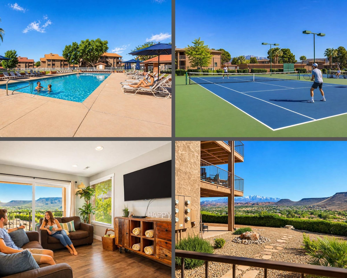 ನಮ್ಮ ಐಷಾರಾಮಿ ರಾತ್ರಿಯ ಬಾಡಿಗೆ ರೆಸಾರ್ಟ್ನಲ್ಲಿ ಮೋಡಿಮಾಡುವ ದಕ್ಷಿಣ ಉತಾಹ್ ಭೂದೃಶ್ಯದ ಅದ್ಭುತಗಳನ್ನು ಅನ್ವೇಷಿಸಿ! ಜಿಯಾನ್ನ ಹೊರಗೆ ಮತ್ತು ಉತಾಹ್ನ ಚಂಡಮಾರುತದ ಹೃದಯಭಾಗದಲ್ಲಿ ಕೇವಲ 20 ನಿಮಿಷಗಳ ಕಾಲ, ನಾವು ಇಡೀ ಕುಟುಂಬಕ್ಕೆ ತವರು ಜಿಯಾನ್ ಜನರಲ್ ಸ್ಟೋರ್, ಲಾಂಡ್ರಿ ಸೌಲಭ್ಯ, ಫೈರ್ ಪಿಟ್ ಮತ್ತು ಹೊರಾಂಗಣ ಒಟ್ಟುಗೂಡಿಸುವ ಸ್ಥಳಗಳು ಸೇರಿದಂತೆ ಅದ್ಭುತ ವಸತಿ ಸೌಕರ್ಯಗಳನ್ನು ಒದಗಿಸುತ್ತೇವೆ! ನಮ್ಮ ವಿಶಾಲವಾದ ಪ್ರೀಮಿಯಂ ಘಟಕವು ನಿಮ್ಮ ಪ್ರಶಾಂತ ಸೂರ್ಯೋದಯ ಕಾಫಿಗಾಗಿ ಪ್ರೈವೇಟ್ ಕ್ವೀನ್ ಸೂಟ್, ಟ್ರಿಪಲ್ ಅವಳಿ ಬೆಡ್ ಲಾಫ್ಟ್, ಈಟ್-ಇನ್ ಕಿಚನ್, ಆರ್ಕೇಡ್ ಯಂತ್ರ ಮತ್ತು ಪ್ರೈವೇಟ್ ಜಕುಝಿಯೊಂದಿಗೆ ಪೂರ್ಣಗೊಂಡಿದೆ.
