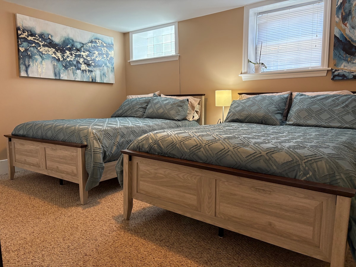 ಸ್ವಾಗತಾರ್ಹ ಮತ್ತು ವಿಶಾಲವಾದ! ನಮ್ಮ ಪ್ರೈವೇಟ್ 1 ಬೆಡ್ರೂಮ್ ಅಪಾರ್ಟ್ಮೆಂಟ್ ಎರಡು ಡಬಲ್ ಬೆಡ್ಗಳು ಮತ್ತು ಸಾಕಷ್ಟು ಆಸನಗಳನ್ನು ಹೊಂದಿರುವ ರೂಮ್ ಲಿವಿಂಗ್ ಏರಿಯಾವನ್ನು ಹೊಂದಿದೆ, 58" ಟಿವಿ ಪುಸ್ತಕಗಳು, ಆಟಿಕೆಗಳು ಮತ್ತು ಆಟಗಳನ್ನು ಹೊಂದಿದೆ. ಪೂರ್ಣ ಗಾತ್ರದ ಫ್ರಿಜ್/ಫ್ರೀಜರ್, ಮೈಕ್ರೊವೇವ್ ಮತ್ತು ಕೆಟಲ್ ಅನ್ನು ನಿರೀಕ್ಷಿಸಿ, ತ್ವರಿತ ಕಡಿತಗಳು ಮತ್ತು ಬೆಳಿಗ್ಗೆ ಬ್ರೂಗಳಿಗೆ ಸೂಕ್ತವಾಗಿದೆ. * ಸ್ಟವ್ ಇಲ್ಲ * ಅಜೇಯ ಅಳಿಲು ಬೆಟ್ಟದ ಸ್ಥಳವನ್ನು ಆನಂದಿಸಿ! **ವಿನಂತಿಯ ಮೇರೆಗೆ, ನಾವು ಶಿಶುವಿಗೆ ಪೋರ್ಟಾ ಕ್ರಿಬ್ ಅನ್ನು ಹೊಂದಿದ್ದೇವೆ ಮತ್ತು ಲಿವಿಂಗ್ ರೂಮ್ನಲ್ಲಿ ಮಲಗಲು ಡಬಲ್ ಏರ್ಮ್ಯಾಟ್ರೆಸ್ + 2 ಗೆಸ್ಟ್ಗಳನ್ನು ವ್ಯವಸ್ಥೆಗೊಳಿಸಬಹುದು.