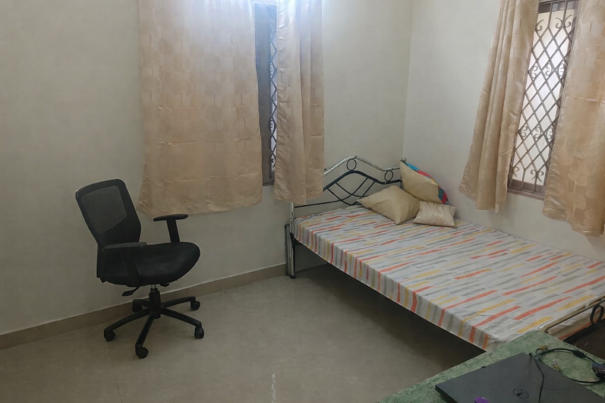 ಲಗತ್ತಿಸಲಾದ ಬಾತ್ರೂಮ್ ಮತ್ತು ಅಡುಗೆಮನೆಯೊಂದಿಗೆ ಸಂಪೂರ್ಣವಾಗಿ ಸಜ್ಜುಗೊಳಿಸಲಾದ, ಹೊಸದಾಗಿ ನವೀಕರಿಸಿದ ಸ್ಟುಡಿಯೋ ರೂಮ್. ಐಟಿ ಕಾರಿಡಾರ್ ಮತ್ತು ಫೀನಿಕ್ಸ್ ಮಾಲ್ಗೆ ಹತ್ತಿರವಿರುವ ವೆಲಾಚರಿಯ ಮುಖ್ಯ ರಸ್ತೆಯಲ್ಲಿ ಅತ್ಯಂತ ಸುರಕ್ಷಿತ ಮತ್ತು ಇದೆ. ವಿಮಾನ ನಿಲ್ದಾಣದಿಂದ ಕೇವಲ 11 ಕಿ. 23 ವರ್ಷದೊಳಗಿನ ಅವಿವಾಹಿತ ದಂಪತಿಗಳನ್ನು ಅನುಮತಿಸಲಾಗುವುದಿಲ್ಲ. 18 ವರ್ಷಕ್ಕಿಂತ ಮೇಲ್ಪಟ್ಟ ಏಕಾಂಗಿ ಪ್ರಯಾಣಿಕರನ್ನು ಸ್ವಾಗತಿಸಲಾಗುತ್ತದೆ. ಸೌಲಭ್ಯಗಳು • AC • ಕ್ವೀನ್-ಗಾತ್ರದ ಹಾಸಿಗೆ • 2 ಆಸನಗಳ ಸೋಫಾ • ರೆಫ್ರಿಜರೇಟರ್, ಗೀಸರ್ • ವೈ-ಫೈ • ಇಂಡಕ್ಷನ್ ಸ್ಟವ್ • ಲಿಕ್ವಿಡ್ ಸೋಪ್, ಶಾಂಪೂ ಮತ್ತು ಟವೆಲ್ಗಳು • ಸೀಮಿತ ಅವಧಿಯ ವಿದ್ಯುತ್ ಬ್ಯಾಕಪ್ (ಫ್ಯಾನ್ಗಳು ಮತ್ತು ಲೈಟ್ಗಳು ಮಾತ್ರ)