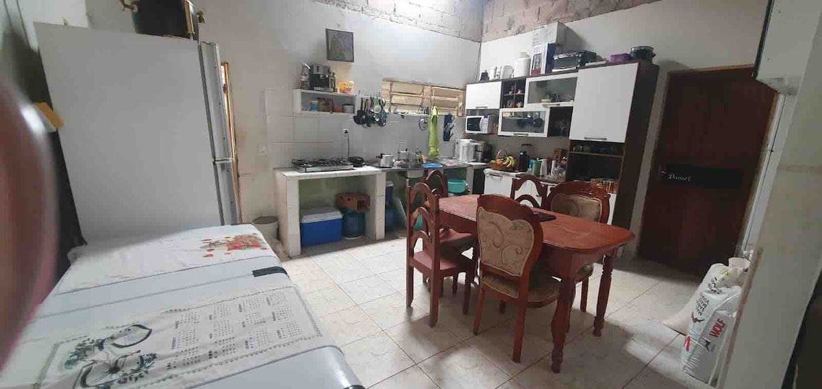 ಅತ್ಯುತ್ತಮ ಸ್ಥಳ ಮತ್ತು ಆಂತರಿಕ ಸ್ಥಳದೊಂದಿಗೆ ಪೂರ್ಣ ಮನೆ. ಹೊರಗಿನ ಪ್ರದೇಶವು ಅದೇ ಜಮೀನಿನಲ್ಲಿರುವ ಮತ್ತೊಂದು ಮನೆಯೊಂದಿಗೆ ಹಂಚಿಕೊಂಡಿದೆ. ಚೌಕಗಳು, ಸೂಪರ್ಮಾರ್ಕೆಟ್ಗಳು, ಲಾಂಡ್ರಿ, ಬಾರ್ಗಳು ಮತ್ತು ರೆಸ್ಟೋರೆಂಟ್ಗಳಿಗೆ ಹತ್ತಿರ. ವಾಹನಕ್ಕಾಗಿ ಗ್ಯಾರೇಜ್. ಸುಸಜ್ಜಿತ ಅಡುಗೆಮನೆ. ಸಾಪ್ತಾಹಿಕ ಬದಲಾವಣೆಯೊಂದಿಗೆ ಹೋಸ್ಟ್ ಒದಗಿಸಿದ ಬೆಡ್ ಲಿನೆನ್ಗಳು.