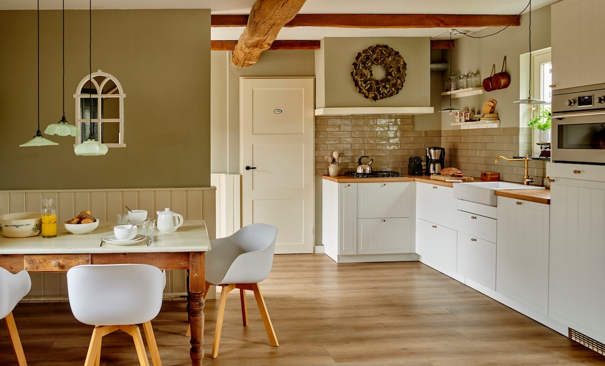 ಕ್ಯಾಸ್ಟೆಲ್ಹೋವ್ ಡಿ ಎರ್ಪ್ಗೆ ಸುಸ್ವಾಗತ, ನಿಜವಾಗಿಯೂ ಒಟ್ಟಿಗೆ ಇರಲು ವಿಶೇಷ ಸ್ಥಳ. ಐತಿಹಾಸಿಕ ಕ್ಯಾಸ್ಟೀಲ್ ಡಿ'ಎರ್ಪ್ನ ಪಕ್ಕದಲ್ಲಿದೆ, ಕಾಲುವೆ ಮತ್ತು ಶಾಂತಿಯಿಂದ ಸುತ್ತುವರಿದಿದೆ, ಇದು ಸ್ಥಳ, ಸೌಕರ್ಯ ಮತ್ತು ಗೌಪ್ಯತೆಯನ್ನು ಹುಡುಕುವ 10 ಜನರವರೆಗಿನ ಕುಟುಂಬಗಳು ಮತ್ತು ಸ್ನೇಹಿತರ ಗುಂಪುಗಳಿಗೆ ವಿಶೇಷ ರಜಾದಿನದ ಮನೆಯಾಗಿದೆ. ಫಾರ್ಮ್ಹೌಸ್ ವಿಶಿಷ್ಟತೆ ಮತ್ತು ಐಷಾರಾಮಿಗಳನ್ನು ಸಂಯೋಜಿಸುತ್ತದೆ, ಅಡುಗೆ ಮಾಡಲು, ಊಟ ಮಾಡಲು ಮತ್ತು ಒಟ್ಟಿಗೆ ವಿಶ್ರಾಂತಿ ಪಡೆಯಲು ಸಾಕಷ್ಟು ಸ್ಥಳಾವಕಾಶವಿದೆ. ಖಾಸಗಿ ಉದ್ಯಾನದಲ್ಲಿ, ನೀವು ಹೊರಾಂಗಣವನ್ನು ನಿರಂತರವಾಗಿ ಆನಂದಿಸಬಹುದು ಮತ್ತು ಬ್ಯಾರೆಲ್ ಸೌನಾದಲ್ಲಿ ಸಂಪೂರ್ಣವಾಗಿ ವಿಶ್ರಾಂತಿ ಪಡೆಯಬಹುದು.