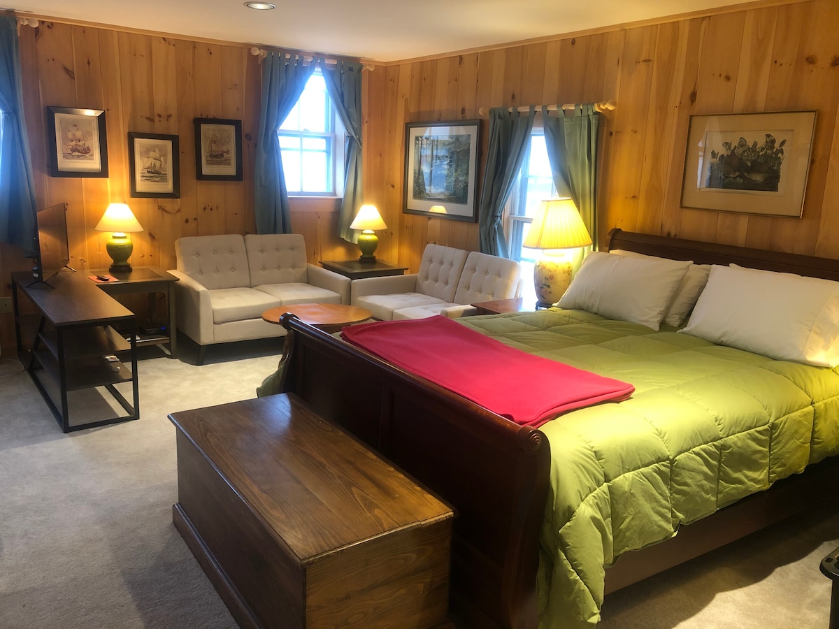 ಅಮೇರಿಕನ್ ಈಗಲ್ 2 ಬೆಡ್ರೂಮ್ಗಳನ್ನು ಹೊಂದಿರುವ ಬಹುಕಾಂತೀಯ ಘಟಕವಾಗಿದೆ: ಒಂದು ಅವಳಿ ಹಾಸಿಗೆಗಳು ಮತ್ತು ಒಂದು ರಾಣಿ, ಪೂರ್ಣ ಸ್ನಾನಗೃಹ, ಹೇರ್ಡ್ರೈಯರ್, ಕೇಬಲ್ ಹೊಂದಿರುವ ಟಿವಿ ಮತ್ತು ಉಚಿತ ವೈಫೈ ಹೊಂದಿರುವ ಮಾಸ್ಟರ್ ಬೆಡ್ರೂಮ್. ಸಂಪೂರ್ಣವಾಗಿ ಸಜ್ಜುಗೊಳಿಸಲಾದ ಅಡುಗೆಮನೆಯು ಪ್ಲೇಟ್ಗಳು ಮತ್ತು ಕಟ್ಲರಿಗಳೊಂದಿಗೆ ಮಡಿಕೆಗಳು ಮತ್ತು ಪ್ಯಾನ್ಗಳನ್ನು ಹೊಂದಿದೆ. ನಾಲ್ಕು ಜನರಿಗೆ ಹೊಂದಿಸಲಾದ ಡೈನಿಂಗ್ ರೂಮ್ ಅನ್ನು ಆನಂದಿಸಿ ಅಥವಾ ಬಂದರಿಗೆ ಎದುರಾಗಿರುವ ದೊಡ್ಡ ಕಿಟಕಿ ಮತ್ತು ಎಲೆಕ್ಟ್ರಿಕ್ ಫೈರ್ಪ್ಲೇಸ್ನೊಂದಿಗೆ ಆರಾಮದಾಯಕ ಕುಳಿತುಕೊಳ್ಳುವ ಪ್ರದೇಶದಲ್ಲಿ ವಿಶ್ರಾಂತಿ ಪಡೆಯಿರಿ. ಸ್ಟೋನಿಂಗ್ಟನ್ನ ಐತಿಹಾಸಿಕ ಜಲಾಭಿಮುಖದ ಖಾಸಗಿ ಡೆಕ್ ಮತ್ತು ಬೆರಗುಗೊಳಿಸುವ ಬಂದರು ನೀರಿನ ವೀಕ್ಷಣೆಗಳಿಗೆ ಪ್ರವೇಶ.
