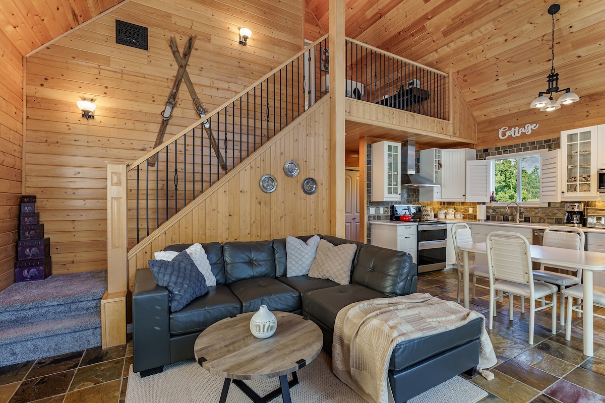 ಕಾಡಿನಲ್ಲಿ ಆಳವಾದ ನಮ್ಮ ಪ್ರಶಾಂತವಾದ ಸ್ಥಳವು ಅನ್ವೇಷಿಸಲು ಅಂತ್ಯವಿಲ್ಲದ ಪ್ರಕೃತಿಯನ್ನು ಒದಗಿಸುತ್ತದೆ. ನಮ್ಮ ಹಳೆಯ-ಶೈಲಿಯ ಹಳ್ಳಿಗಾಡಿನ ಕ್ಯಾಬಿನ್ ಕುಟುಂಬ ಮತ್ತು ಸ್ನೇಹಿತರೊಂದಿಗೆ ಮರುಸಂಪರ್ಕಿಸಲು ಮತ್ತು ರೀಚಾರ್ಜ್ ಮಾಡಲು ಪರಿಪೂರ್ಣ ಸ್ಥಳವಾಗಿದೆ. ಇಡೀ ಕುಟುಂಬದೊಂದಿಗೆ ಅಥವಾ ನಿಮ್ಮಿಬ್ಬರೊಂದಿಗೆ ಆರಾಮವಾಗಿ ಮತ್ತು ವಿಶ್ರಾಂತಿ ಪಡೆಯಿರಿ. ನಮ್ಮ ಆರಾಮದಾಯಕ ಹಾಸಿಗೆಗಳು ಮತ್ತು ದೊಡ್ಡ ಹಾಟ್ ಟಬ್ ನಿಮಗೆ ಅಗತ್ಯವಿರುವ ರೀಚಾರ್ಜ್ ಅನ್ನು ನೀಡುತ್ತದೆ. ಕಿಂಗ್, ಕ್ವೀನ್, 2 ಸೆಟ್ ಬಂಕ್ಗಳು ಮತ್ತು 2 ಪುಲ್ಔಟ್ಗಳು. ಹಾಟ್ ಟಬ್, ಟ್ರೇಲ್ಗಳು, ಪಕ್ಷಿ ವೀಕ್ಷಣೆ, ಫೈರ್ ಪಿಟ್, ಟ್ಯೂಬ್ ಟಿವಿ (VHS’, ನಿಂಟೆಂಡೊ), ಪುಸ್ತಕಗಳು, ಬೋರ್ಡ್ ಆಟಗಳು, ಅಂಗಳದ ಆಟಗಳು, ಮರದ ಸುಡುವ ಸ್ಟೌ.