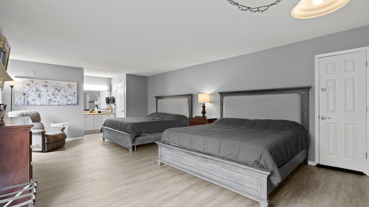 ನಿಮ್ಮ ಮನಸ್ಸಿನಲ್ಲಿಟ್ಟುಕೊಂಡು ನಾವು ನಮ್ಮ ಸ್ಥಳವನ್ನು ಉದ್ದಕ್ಕೂ ನವೀಕರಿಸಿದ್ದೇವೆ! ಕಮಾನಿನ ಛಾವಣಿಗಳು, ಸಾಕಷ್ಟು ನೈಸರ್ಗಿಕ ಬೆಳಕು, ಈಜು ಡೆಕ್ ಮತ್ತು ಸೌಲಭ್ಯಗಳಿಗೆ ಹತ್ತಿರವಿರುವ ಉನ್ನತ ಮಟ್ಟದ ಅಂತಿಮ ಘಟಕ. ಉದ್ದಕ್ಕೂ ಆರಾಮದಾಯಕ ಪೀಠೋಪಕರಣಗಳು! ರೆಸಾರ್ಟ್ ಸರೋವರ ಕ್ಲಾಸಿಕ್ ಮತ್ತು ಮಧ್ಯದಲ್ಲಿದೆ. ನಿಮ್ಮ ಕುಟುಂಬವು ಇಲ್ಲಿ ಸಮಯವನ್ನು ಇಷ್ಟಪಡುತ್ತದೆ, ಪೂಲ್ಗಳಲ್ಲಿ ಮತ್ತು ಸರೋವರದಲ್ಲಿ ಅಥವಾ ಆಟದ ಮೈದಾನ ಮತ್ತು ಟೆನಿಸ್ ಕೋರ್ಟ್ಗಳಲ್ಲಿ ನೆನಪುಗಳನ್ನು ಮಾಡುತ್ತದೆ. ಡೆಕ್ನಲ್ಲಿ ಕುಟುಂಬ ಮತ್ತು ಸ್ನೇಹಿತರ ನಗುವನ್ನು ನೀವು ಬಹುತೇಕ ಕೇಳಬಹುದು! ಆಹಾರ, ಮನರಂಜನೆ ಮತ್ತು ವಿನೋದಕ್ಕೆ ಹತ್ತಿರ. ನಿಮ್ಮ ಮುಂದಿನ ವಿಹಾರವನ್ನು ಯೋಜಿಸಲು ನಿಮಗೆ ಸಹಾಯ ಮಾಡಲು ನಾವು ಬಯಸುತ್ತೇವೆ!
