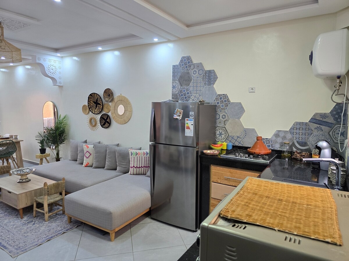 ಬೆರಗುಗೊಳಿಸುವ ಸಮುದ್ರ ನೋಟಗಳೊಂದಿಗೆ 4 ಜನರಿಗೆ ನಮ್ಮ ಪ್ರಕಾಶಮಾನವಾದ ಅಪಾರ್ಟ್ಮೆಂಟ್ಗೆ ತಪ್ಪಿಸಿಕೊಳ್ಳಿ. ಬಾರ್ಬೆಕ್ಯೂ ಮತ್ತು ಅಗ್ಗಿಷ್ಟಿಕೆ ಹೊಂದಿರುವ ದೊಡ್ಡ ಖಾಸಗಿ ಟೆರೇಸ್ ಅನ್ನು ಆನಂದಿಸಿ, ಸೂರ್ಯಾಸ್ತವನ್ನು ಮೆಚ್ಚಿಸಲು ಸೂಕ್ತವಾಗಿದೆ. ಶಾಂತ ಪ್ರದೇಶದಲ್ಲಿದೆ, ಕಡಲತೀರ ಮತ್ತು ಸರ್ಫ್ ಸ್ಪಾಟ್ಗಳಿಗೆ ಸ್ವಲ್ಪ ದೂರದಲ್ಲಿದೆ. ದಂಪತಿಗಳು ಮತ್ತು ಸ್ನೇಹಿತರಿಗೆ ಸೂಕ್ತವಾದ ಈ ವಿಶಿಷ್ಟ ಸ್ಥಳವು ಆಧುನಿಕ ಸೌಕರ್ಯ ಮತ್ತು ಮೊರೊಕನ್ ಮೋಡಿಯನ್ನು ಅದರ ಎರಡು ಆರಾಮದಾಯಕ ಮಲಗುವ ಕೋಣೆಗಳು ಮತ್ತು ಮೀಸಲಾದ ಕಾರ್ಯಸ್ಥಳದೊಂದಿಗೆ ಸಂಯೋಜಿಸುತ್ತದೆ. ಮರೆಯಲಾಗದ ವಿಹಾರವು ಕಾಯುತ್ತಿದೆ.