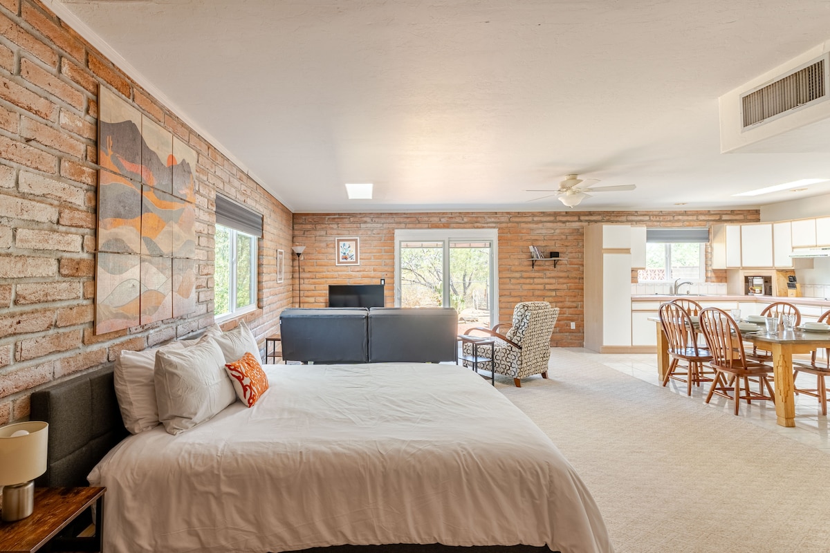 ಹೌಡಿ! ಕ್ಯಾಟಲಿನಾ ತಪ್ಪಲಿನಲ್ಲಿರುವ ಸಬಿನೋ ಕ್ಯಾನ್ಯನ್ ಮತ್ತು ಸಾಗುವಾರೊ ನ್ಯಾಷನಲ್ ಪಾರ್ಕ್ ಬಳಿ ಈ 500 ಚದರ ಅಡಿ ಗೆಸ್ಟ್ ಕ್ಯಾಸಿತಾದ ಪಶ್ಚಿಮ ವೈಬ್ ಮತ್ತು ಡೌನ್-ಹೋಮ್ ಭಾವನೆಯನ್ನು ನೀವು ಇಷ್ಟಪಡುತ್ತೀರಿ. ಉದ್ಯಾನವನದಂತಹ ಹಿತ್ತಲಿನ ಕಡೆಗೆ ನೋಡುತ್ತಿರುವ ನಿಮ್ಮ ಸ್ವಂತ ಒಳಾಂಗಣದಲ್ಲಿ ಫ್ರೆಂಚ್ ಬಾಗಿಲುಗಳ ಹೊರಗೆ ಕಾಫಿ ಅಥವಾ ವೈನ್ ಅನ್ನು ಆನಂದಿಸಿ. ಫೈನ್ ಟಕ್ಸನ್ ರೆಸಾರ್ಟ್ಗಳ ಹತ್ತಿರ, ವೆಂಟಾನಾ ಕ್ಯಾನ್ಯನ್, ಲಾ ಪಲೋಮಾ ಮತ್ತು ಕ್ಯಾನ್ಯನ್ ರಾಂಚ್. ಆಫ್ ಸ್ಟ್ರೀಟ್ ಪಾರ್ಕಿಂಗ್, ಪೂಲ್, ಪ್ರೈವೇಟ್ ಪ್ರವೇಶ, ವೈಫೈ, ಅಮೆಜಾನ್ ಪ್ರೈಮ್ ಮತ್ತು ನೆಟ್ಫ್ಲಿಕ್ಸ್. ಟಕ್ಸನ್ನಲ್ಲಿ ಅಲ್ಪಾವಧಿಯ ಅಥವಾ ದೀರ್ಘಾವಧಿಯ ವಾಸ್ತವ್ಯಕ್ಕೆ ಸೂಕ್ತವಾಗಿದೆ. (ನೀವು ಹೊರಡುವಾಗ ಯಾವುದೇ ಕೆಲಸ ಲಿಸ್ಟ್ ಇಲ್ಲ - ನೀವು ನಮ್ಮ ಗೆಸ್ಟ್ ಆಗಿದ್ದೀರಿ!)