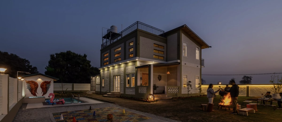 Nestled near the Corbett forest, Dragonfly Homes is a dream getaway for families and friends. With four spacious bedrooms, a private pool, and bathtub views that open to nature, it’s built for comfort, laughter, and togetherness. Spend your mornings watching birds, your afternoons in the pool, and your evenings around the deck as fireflies glow. Here, nature and home blend beautifully — giving you a stay that everyone will remember.