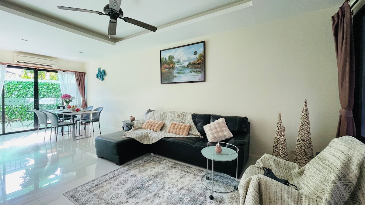 ಚೆರ್ನ್ಗ್ಟಲೇಯ್ - ಬ್ಯಾಂಗ್ಜೋನಲ್ಲಿ ಸಂಪೂರ್ಣವಾಗಿ ನವೀಕರಿಸಿದ ವಿಲ್ಲಾ. 4 ವರ್ಷದೊಳಗಿನ ದಂಪತಿಗಳು, ಕುಟುಂಬಗಳು ಅಥವಾ ಸ್ನೇಹಿತರ ಗುಂಪಿಗೆ ಸಂಪೂರ್ಣವಾಗಿ ಸುಸಜ್ಜಿತವಾಗಿದೆ ಮತ್ತು ಅದ್ಭುತವಾಗಿದೆ. ಎಲ್ಲಾ ಸೌಲಭ್ಯಗಳು ಹೊಚ್ಚ ಹೊಸದಾಗಿವೆ ಮತ್ತು ಯಾವಾಗಲೂ ಸ್ವಚ್ಛವಾಗಿರುತ್ತವೆ. 2 ಬೆಡ್ರೂಮ್ಗಳು, 3 ಸ್ನಾನಗೃಹಗಳು, ಜಕುಝಿ ಹೊಂದಿರುವ ಹೊರಾಂಗಣ ಪೂಲ್, ದೊಡ್ಡ ಉದ್ಯಾನ, ಖಾಸಗಿ ಕಾರು/ಮೋಟಾರ್ಬೈಕ್ ಪಾರ್ಕಿಂಗ್ ಪ್ರದೇಶ, BBQ, ವಾಷಿಂಗ್ ಮೆಷಿನ್, 65' ಟಿವಿ... ಅಕ್ಷರಶಃ ಫುಕೆಟ್ನಲ್ಲಿ ನಿಮ್ಮ ಪರಿಪೂರ್ಣ ಮತ್ತು ವಿಶ್ರಾಂತಿ ವಾಸ್ತವ್ಯಕ್ಕೆ ನಿಮಗೆ ಅಗತ್ಯವಿರುವ ಎಲ್ಲವನ್ನೂ ಆನಂದಿಸಲು ನಿಮಗೆ ಸಾಧ್ಯವಾಗುತ್ತದೆ. ನಿಮ್ಮ ಭದ್ರತೆಗಾಗಿ ಹೊರಾಂಗಣ ಸ್ಥಳಗಳಲ್ಲಿ ಸಿಸಿಟಿವಿ.
