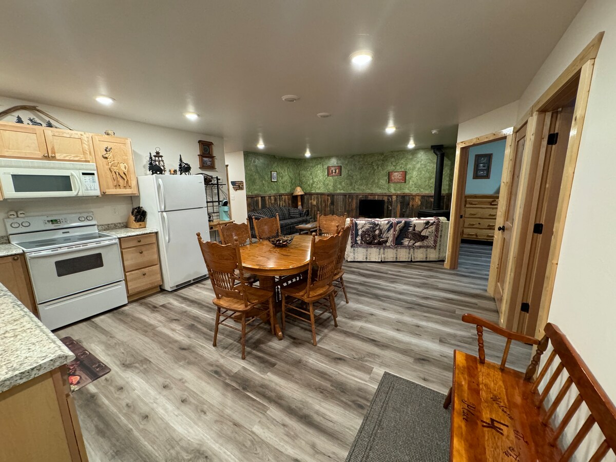 ಕೌಬಾಯ್ ಕ್ಯಾಬಿನ್ಗೆ ಸುಸ್ವಾಗತ!! ಸುಂದರವಾದ ಥ್ರೀ ಫೋರ್ಕ್ಸ್ನಲ್ಲಿರುವ ಮೇನ್ ಸ್ಟ್ರೀಟ್ನಲ್ಲಿರುವ ಮೊಂಟಾನಾ ಈ ಅಪಾರ್ಟ್ಮೆಂಟ್ ಅನ್ನು ಐತಿಹಾಸಿಕ ಥ್ರೀ ಫೋರ್ಕ್ಸ್ ಸ್ಯಾಡ್ಲರಿಗೆ ಲಗತ್ತಿಸಲಾಗಿದೆ. ಉದ್ದಕ್ಕೂ ಹಳೆಯ ಪಶ್ಚಿಮ ಅಲಂಕಾರದೊಂದಿಗೆ, ಮಲಗುವ ಕೋಣೆ ಆರಾಮದಾಯಕ ರಾಣಿ ಗಾತ್ರದ ಹಾಸಿಗೆ ಮತ್ತು ಕ್ಲೋಸೆಟ್ ಅನ್ನು ಹೊಂದಿದೆ. ಬಾತ್ರೂಮ್ ಸುಂದರವಾದ ಟೈಲ್ಡ್ ವಾಕ್-ಇನ್ ಶವರ್ ಅನ್ನು ಹೊಂದಿದೆ. ಮುಖ್ಯ ವಾಸಿಸುವ ಪ್ರದೇಶದಲ್ಲಿ, ಗೆಸ್ಟ್ಗಳು ಹಾಟ್ ಪ್ಲೇಟ್, ಟೋಸ್ಟರ್ ಓವನ್, ಮೈಕ್ರೊವೇವ್ ಮತ್ತು ಸಣ್ಣ ರೆಫ್ರಿಜರೇಟರ್ನೊಂದಿಗೆ ಅಡಿಗೆಮನೆಯನ್ನು ಆನಂದಿಸಬಹುದು. ಕುಟುಂಬಗಳಿಗೆ ಸೂಕ್ತವಾಗಿದೆ, ವಯಸ್ಕರಿಗೆ ಸಾಕಷ್ಟು ದೊಡ್ಡದಾದ ಬಂಕ್ ಹಾಸಿಗೆಗಳಿವೆ ಅಥವಾ ಮಕ್ಕಳನ್ನು ಕರೆತರುತ್ತವೆ.