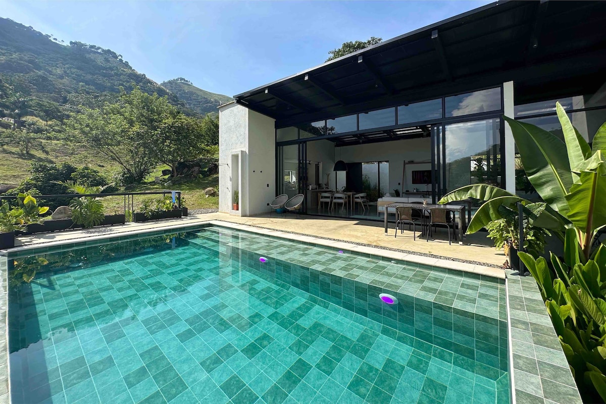 ಉಚಿತ ಮನೆ ನೈಸರ್ಗಿಕ ವಾತಾವರಣ ಮತ್ತು ಪರ್ವತಗಳ ಅದ್ಭುತ ನೋಟವನ್ನು ಹೊಂದಿರುವ ಮೆಡೆಲಿನ್ನಿಂದ 50 ನಿಮಿಷಗಳ ದೂರದಲ್ಲಿರುವ ಸುಂದರವಾದ ಮನೆಯಾಗಿದೆ. ವಿಶ್ರಾಂತಿ ಪಡೆಯಲು ಮತ್ತು ಮಾಂತ್ರಿಕ ನೆನಪುಗಳನ್ನು ರಚಿಸಲು ಬಯಸುವ ದಂಪತಿಗಳು, ಸಣ್ಣ ಗುಂಪುಗಳು ಅಥವಾ ಕುಟುಂಬಗಳಿಗೆ ಇದು ಸೂಕ್ತ ಸ್ಥಳವಾಗಿದೆ! ನಾವು 8 ಜನರಿಗೆ ಅವಕಾಶ ಕಲ್ಪಿಸಬಹುದು ಮತ್ತು ನಮ್ಮಲ್ಲಿ ವೈಫೈ, ಟಿವಿ, bbq ಮತ್ತು ಅಂತ್ಯವಿಲ್ಲದ ಪೂಲ್ ಇವೆ. ಸ್ಥಳ ಎಸ್ಟೇಟ್ ಕಥಾವಸ್ತುವಿನೊಳಗಿನ ಖಾಸಗಿ ಮನೆಯಾಗಿದೆ. ಇದು ಸಂಪೂರ್ಣ ಸುಸಜ್ಜಿತ ಅಡುಗೆಮನೆ ಮತ್ತು ಡೈನಿಂಗ್ ರೂಮ್ ಅನ್ನು ಹೊಂದಿದೆ ಮತ್ತು 8 ಕಾರುಗಳ ಸಾಮರ್ಥ್ಯದೊಂದಿಗೆ ಖಾಸಗಿ ಪಾರ್ಕಿಂಗ್ ಸ್ಥಳವನ್ನು ಹೊಂದಿದೆ.