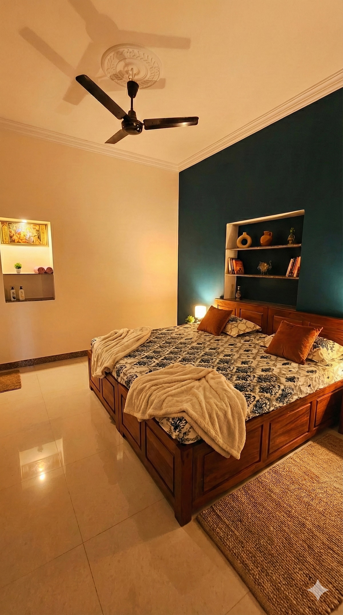 Enjoy a luxurious stay in central Jodhpur with 3 KING BEDS, 4 BALCONIES, a FULL FAMILY KITCHEN, and a PRIVATE ROOFTOP GARDEN—all within a spacious 2400 Sq Ft Home that’s entirely yours. Direct Cab Access to Doorstep. 🏢 Amenities Lift High-speed Wi-Fi and smart TV and Speaker Family ready kitchen Air-conditioned rooms Private parking for 2 cars Safe Water: RO water purifier installed. 📍 Location Umaid Bhawan Palace- 4 Km Mehrangarh Fort - 4 KM Airport - 8 Km Railway Station - 5 Km