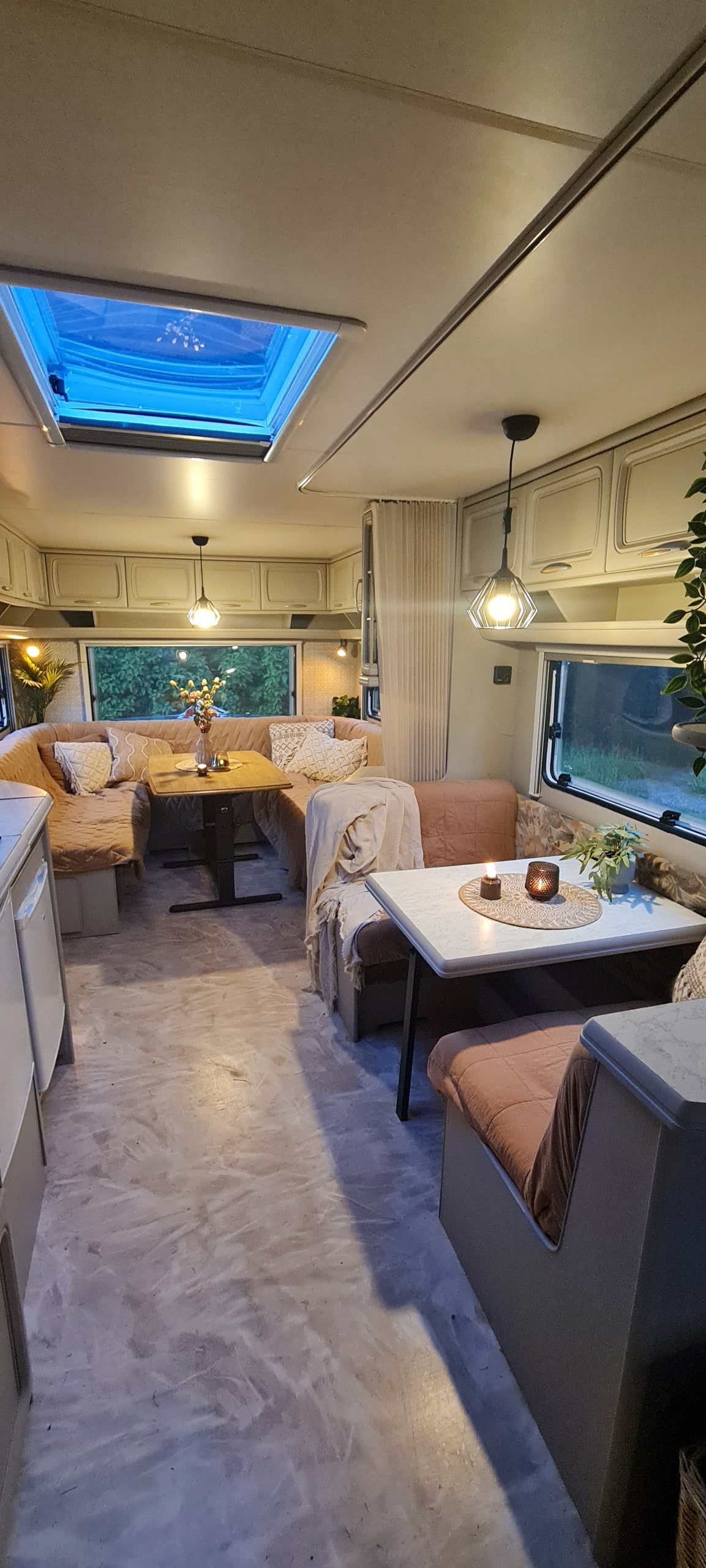ಸ್ಟೈಲಿಶ್ ನವೀಕರಿಸಿದ ಕಾರವಾನ್. ಗ್ರಿಡ್ನಲ್ಲಿ ನಿಲ್ಲಬಹುದು. ಕ್ಯಾಂಪ್ಸೈಟ್ ಇಲ್ಲದೆ ಅದು ಯುನಿಟ್ ಮತ್ತು ಸೌರ ಕೋಶವನ್ನು ಹೊಂದಿದೆ. ಅಥವಾ ವಿದ್ಯುತ್ ಸಂಪರ್ಕ ಹೊಂದಿರುವ ಕ್ಯಾಂಪ್ಸೈಟ್ನಲ್ಲಿ. ನೀವು ಹ್ಯಾಂಗರ್ಗಳಿಗೆ ಪ್ರಮಾಣಪತ್ರವನ್ನು ಹೊಂದಿದ್ದರೆ ಅಥವಾ ಅಪಾಯಿಂಟ್ಮೆಂಟ್ ಮೂಲಕ ನೀವು ಬಯಸುವ ಪ್ರದೇಶಕ್ಕೆ ಕರೆದೊಯ್ಯಬಹುದಾದರೆ ಟ್ರಿಪ್ಗಾಗಿ ಬಾಡಿಗೆಗೆ ನೀಡಬಹುದು. ಪೂರ್ಣ ನಿದ್ರೆ 5! ಮುಖ್ಯವಾಗಿ ಹಬ್ಬದ ಬಳಕೆಗಾಗಿ ಬಾಡಿಗೆಗೆ ನೀಡಲಾಗಿಲ್ಲ.