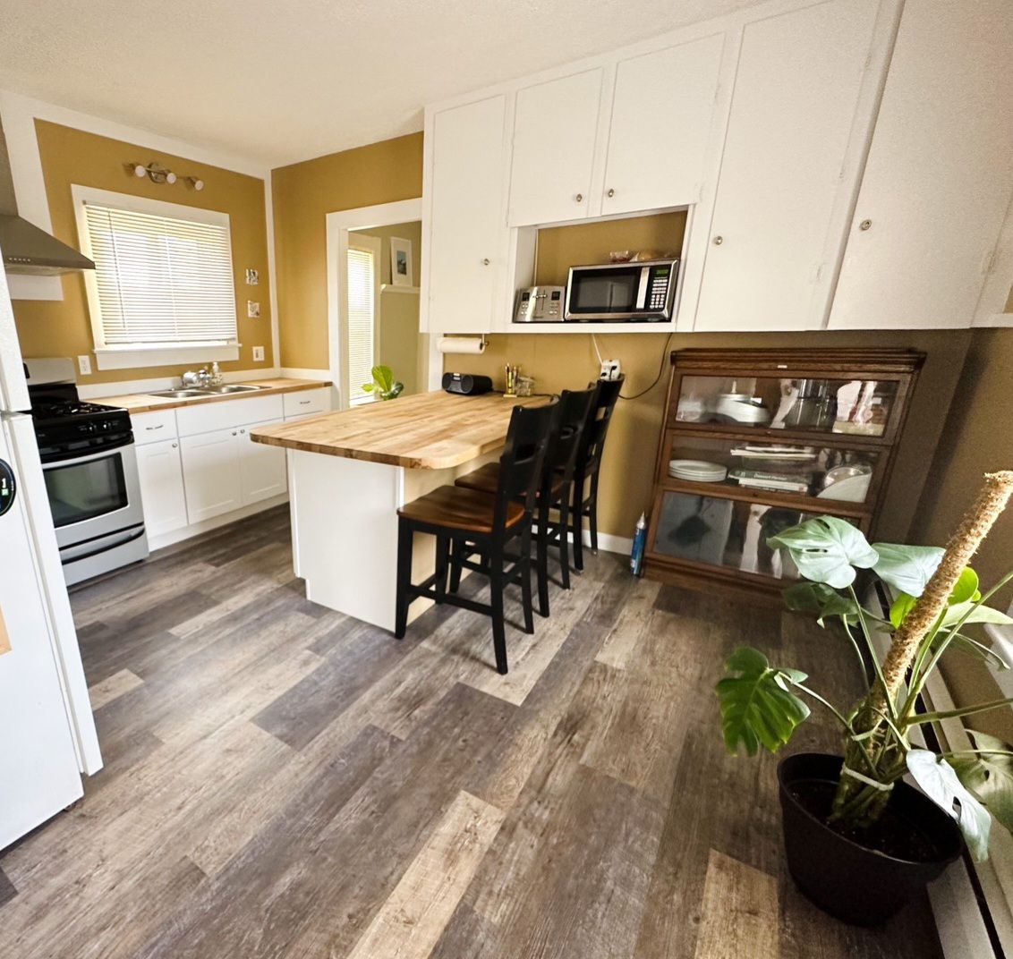 • Perfect for small families or couples, our signature A-Frame cabin features a modern interior gas burning fireplace, soaring ceilings, huge windows, stylish interiors, and all the comforts of home. • This cozy 1,100 square foot space comfortably accommodates up to four guests in two bedrooms (one with a King-size bed and the other with a Queen-size bed) and a shared bathroom. • 7 minute drive to downtown Freeport. • Proud to be ranked in the top 1% and voted Guest Favorite!