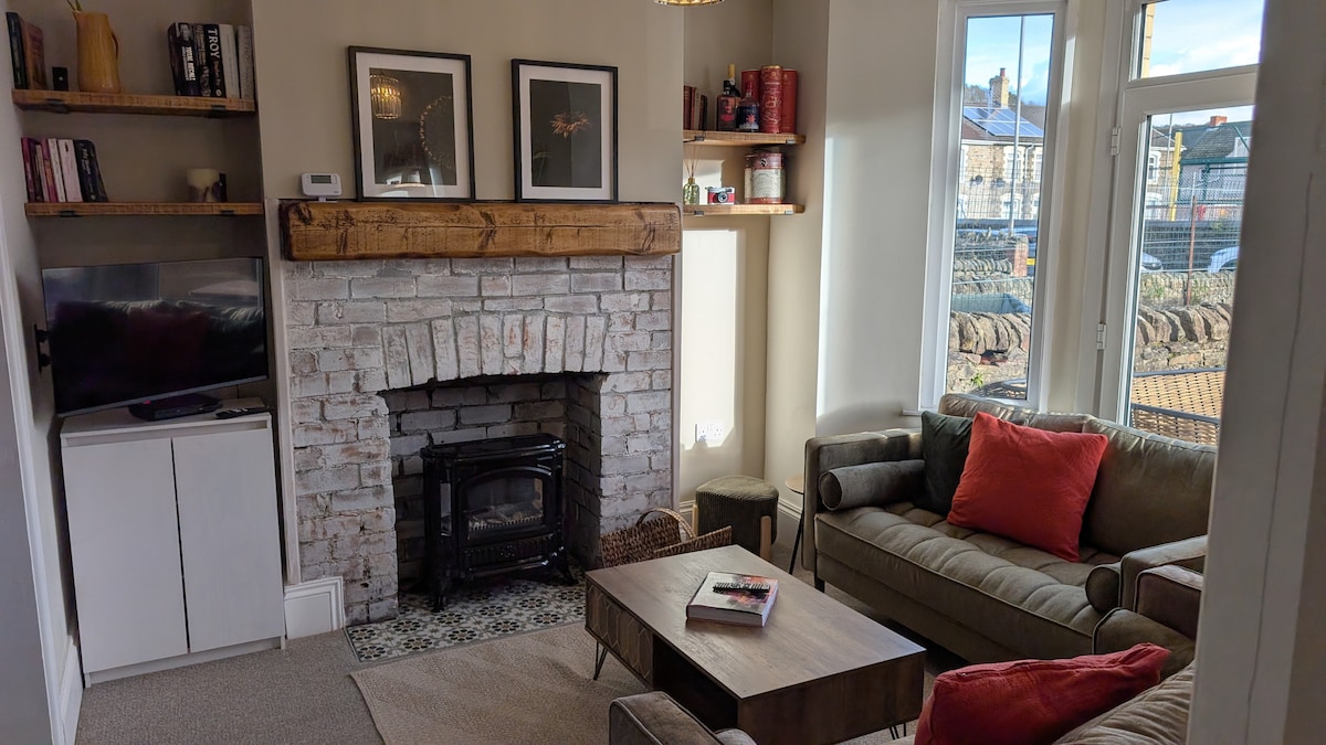 The view. The view. The view. This little miners cottage with large picture window offers views across the picturesque village of Six Bells and the valley beyond. It is just 20 minutes to the Beacons and nestled into one of the prettiest wooded hillsides in the area. The house itself is pleasant, warm and welcoming, providing everything you could need for your stay. The lower floor has oak floors, while the upper floor has toasty wool carpets for a cosy stay. Did we mention the view?