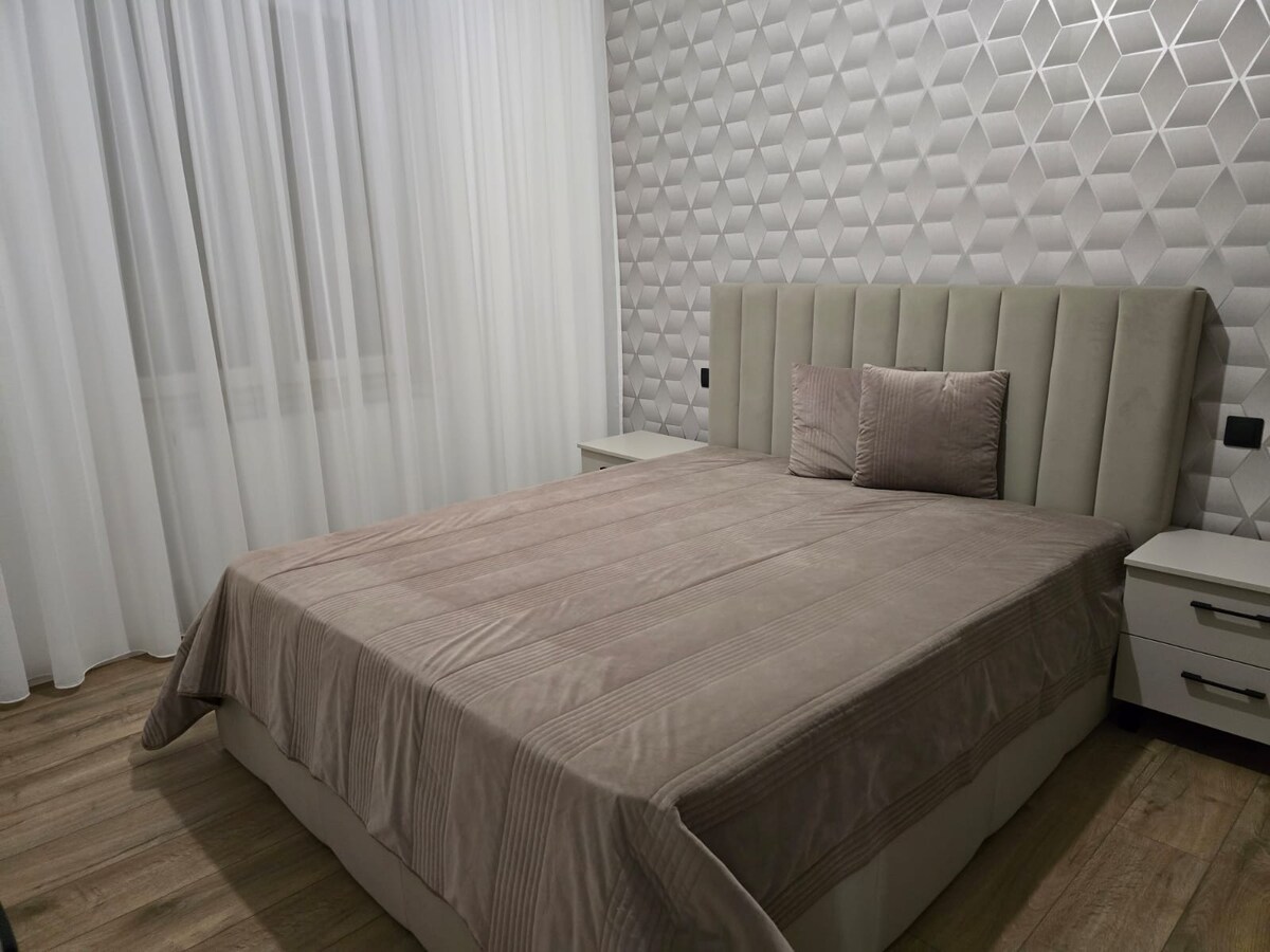 ನಿಮ್ಮ ಹೊಸ ಸೊಗಸಾದ ಅಪಾರ್ಟ್ಮೆಂಟ್ 2 ವ್ಯಕ್ತಿಗಳವರೆಗೆ ಆರಾಮದಾಯಕ ವಾಸ್ತವ್ಯವನ್ನು ನೀಡುತ್ತದೆ. ಇದು ಡೌನ್ಟೌನ್ನೊಳಗೆ ಕೆಲವೇ ನಿಮಿಷಗಳಲ್ಲಿ ಹೊಸ ಎಸ್ಟೇಟ್ನಲ್ಲಿದೆ. ಸ್ಥಳವನ್ನು ಸಂಪೂರ್ಣವಾಗಿ ಸಜ್ಜುಗೊಳಿಸಲಾಗಿದೆ (ಅಡುಗೆಮನೆ ಉಪಕರಣಗಳು, ವೈ-ಫೈ, ಆಂಟಿಕ್ ಸ್ಮಾರ್ಟ್ ಟಿವಿ, ಇತ್ಯಾದಿ) ಮತ್ತು ನಿಮ್ಮ ವಾಸ್ತವ್ಯಕ್ಕೆ ಸಿದ್ಧವಾಗಿದೆ. ಗೊತ್ತುಪಡಿಸಿದ ಭೂಗತ ಸ್ಥಳದಲ್ಲಿ ಉಚಿತ ಪಾರ್ಕಿಂಗ್ ಒದಗಿಸಲಾಗಿದೆ. ಪ್ರಾಪರ್ಟಿ ಮತ್ತು ಗೆಸ್ಟ್ಗಳ ಸುರಕ್ಷತೆಯನ್ನು ಖಾಸಗಿ ಭದ್ರತಾ ಕಂಪನಿಯು ಒದಗಿಸುತ್ತದೆ.